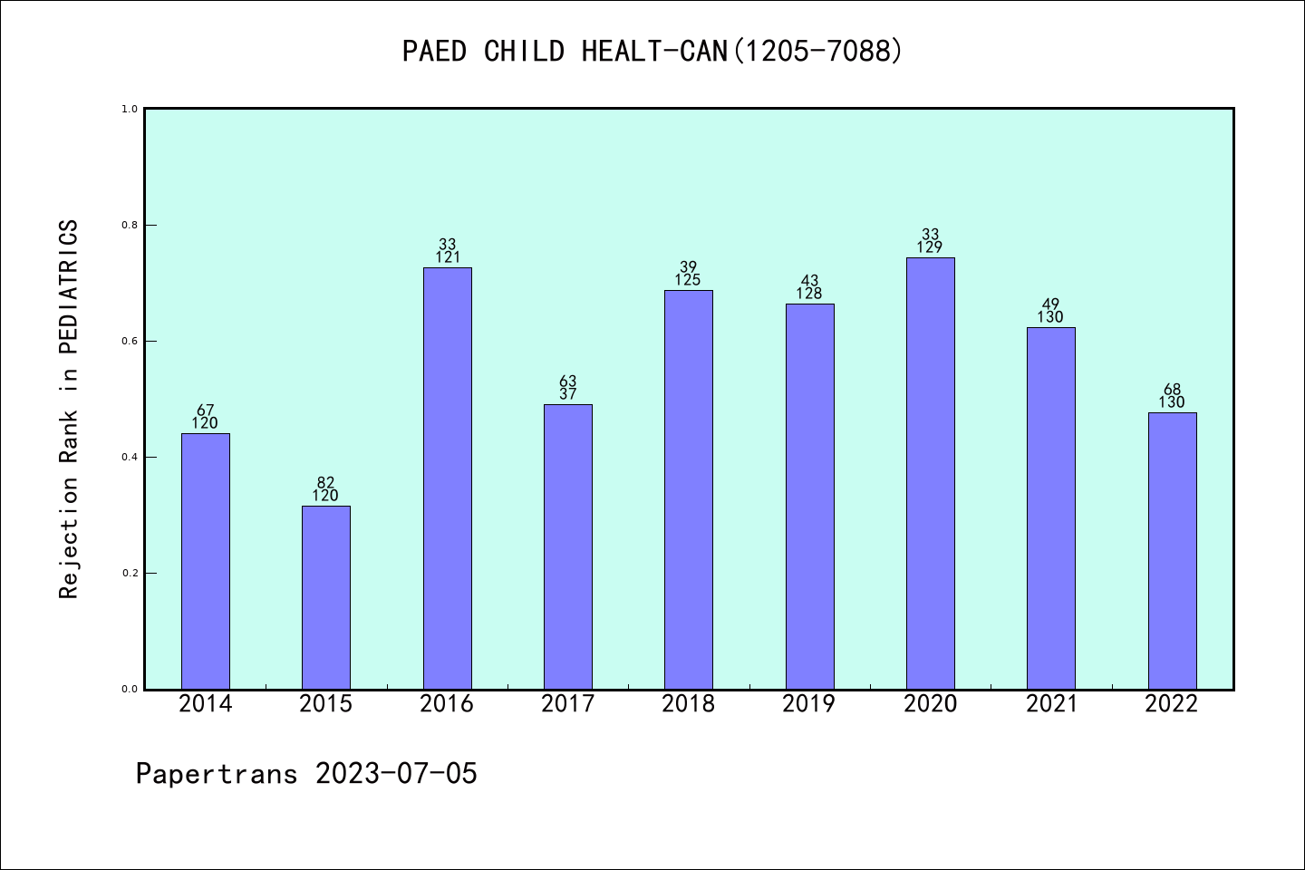 SCIE期刊Paediatrics & Child Health历年拒稿占比