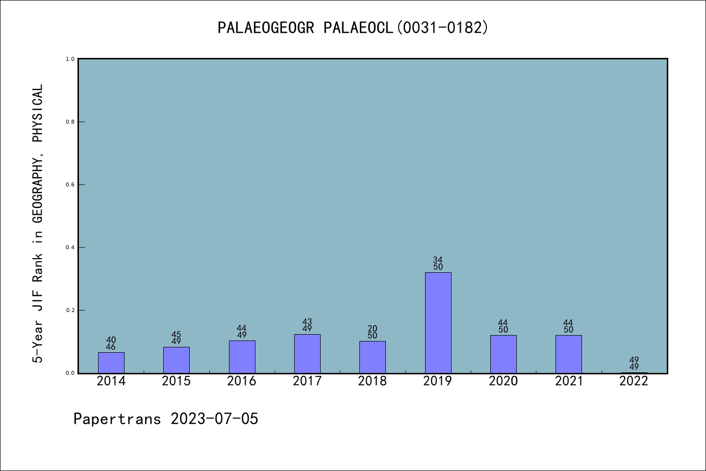 PALAEOGEOGRAPHY PALAEOCLIMATOLOGY PALAEOECOLOGY拒稿率学科排名@SCIE物理地理