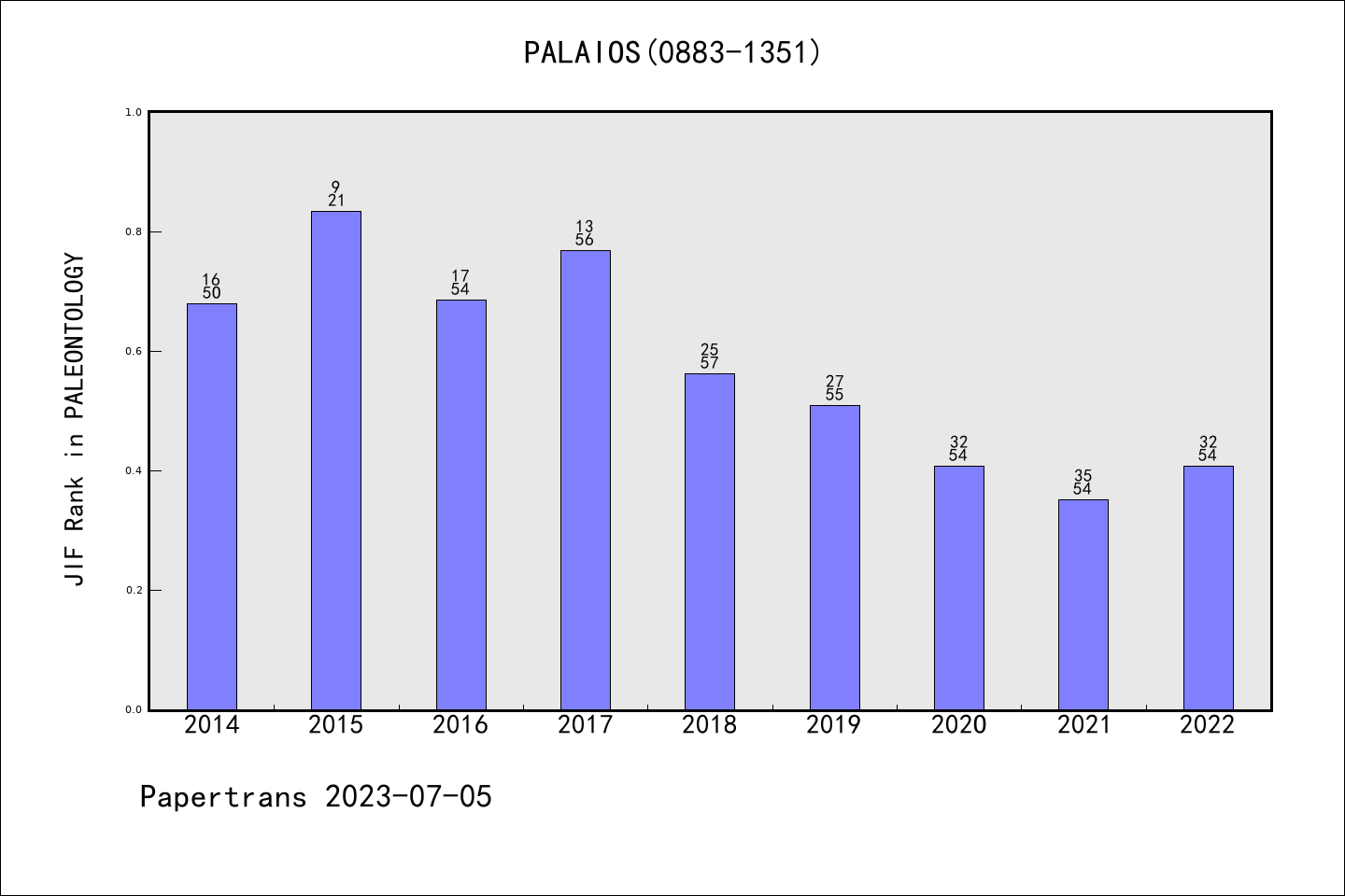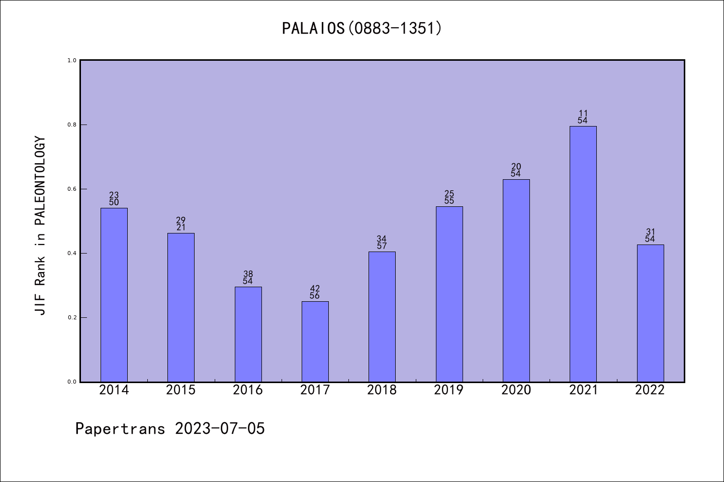 PALAIOS派博系数(Pindex)学科排名@SCIE古生物学