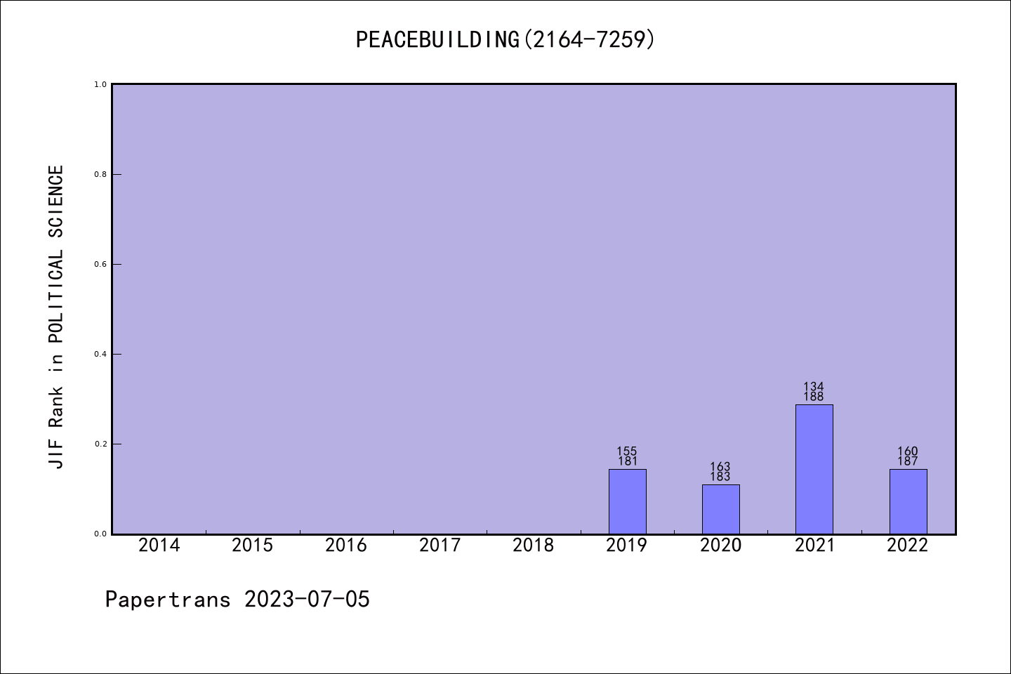 SSCI期刊Peacebuilding历年派博系数(Pindex)