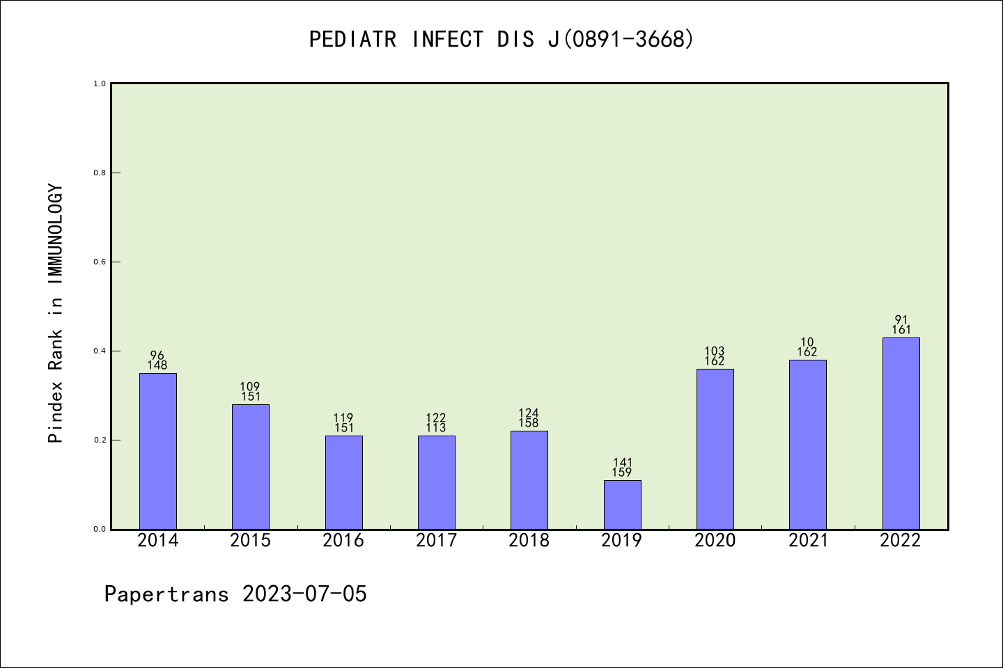 PEDIATRIC INFECTIOUS DISEASE JOURNAL派博系数(Pindex)学科排名@SCIE免疫学