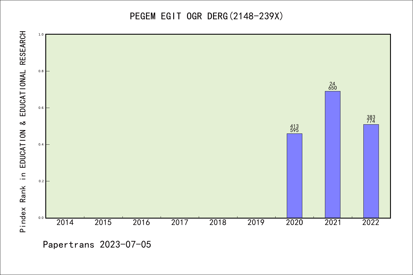 ESCI期刊Pegem Egitim ve Ogretim Dergisi历年派博系数(Pindex)