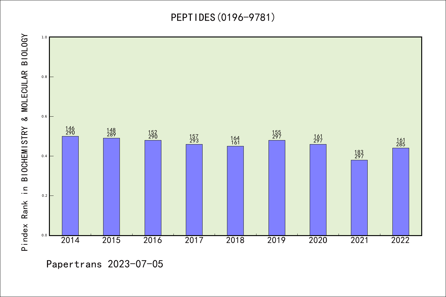 PEPTIDES派博系数(Pindex)学科排名@SCIE生物化学与分子生物学