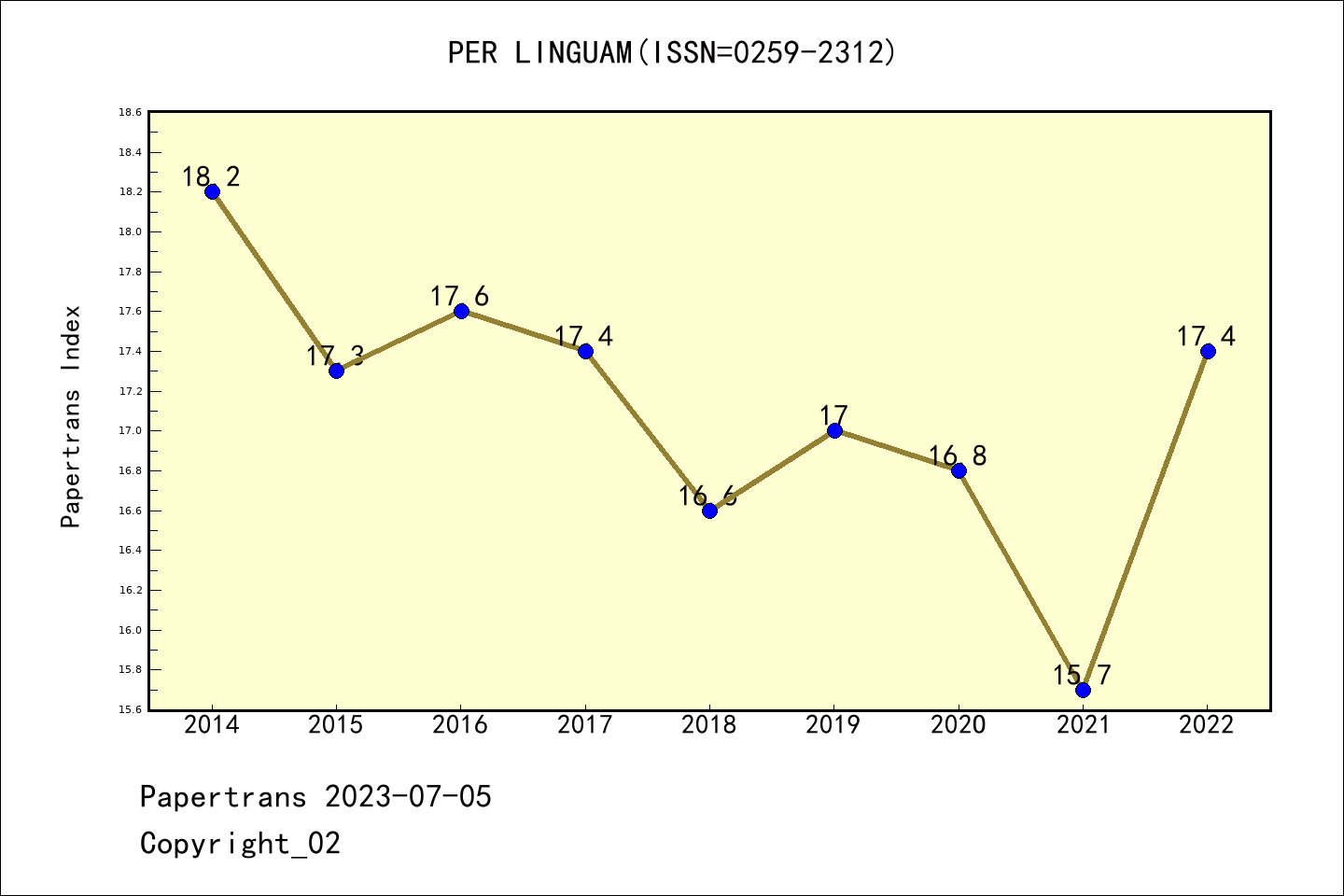 ESCI期刊Per Linguam-A Journal of Language Learning历年派博系数(Pindex)