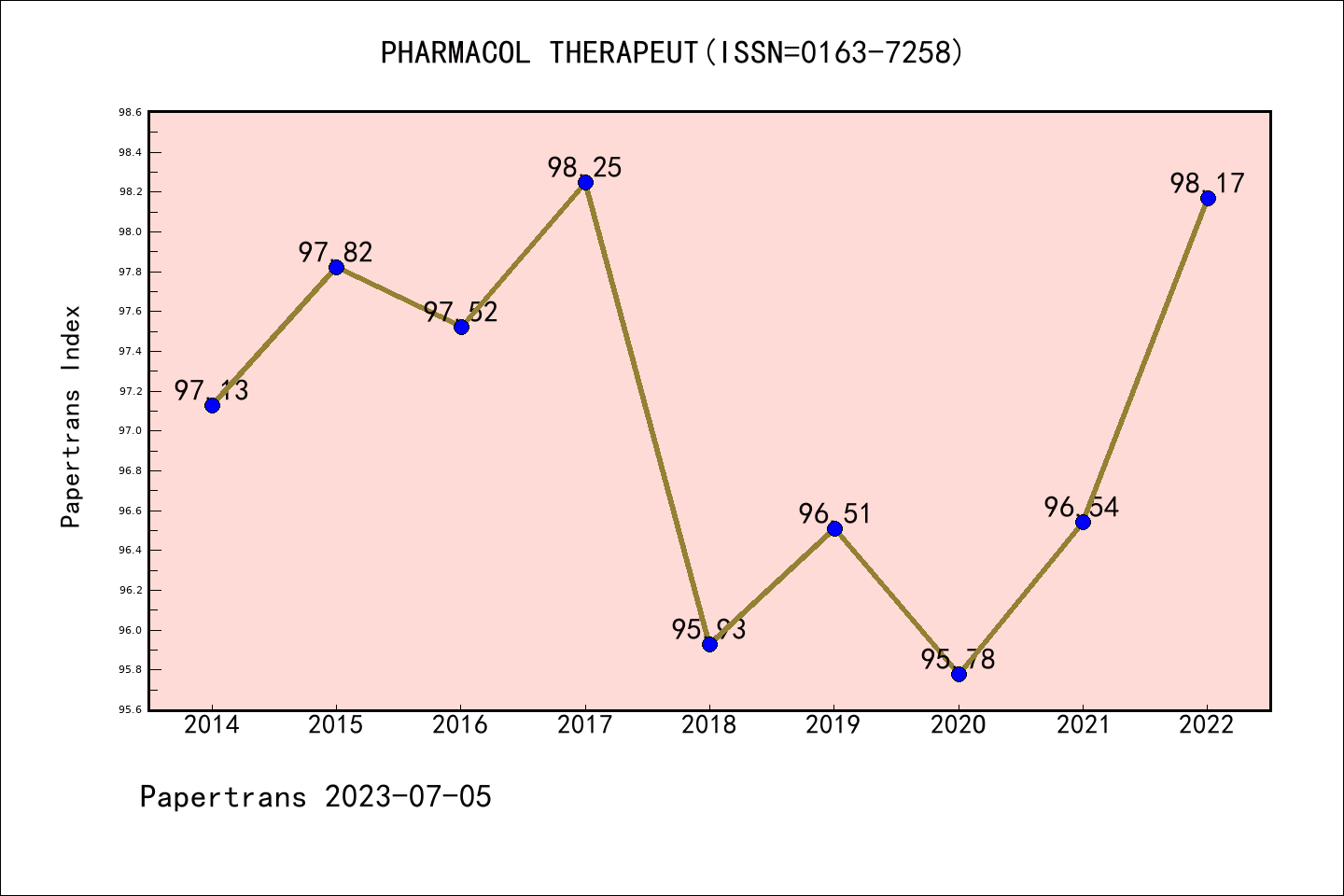 SCIE期刊PHARMACOLOGY & THERAPEUTICS历年派博系数(Pindex)