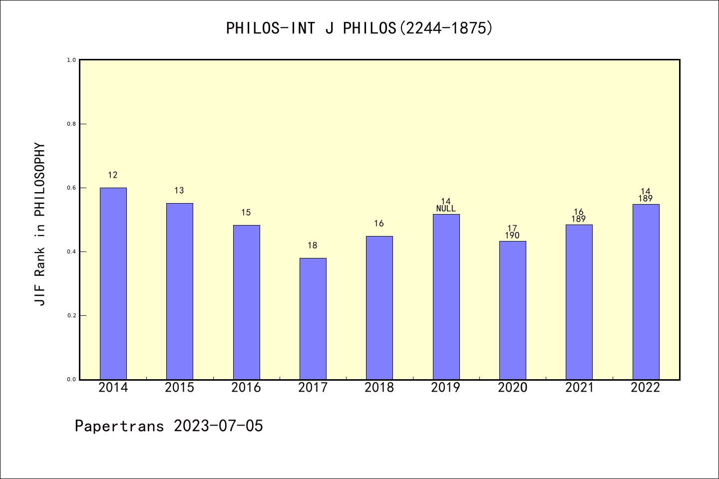 PHILOS-INT J PHILOS图表质量排名@AHCI哲学
