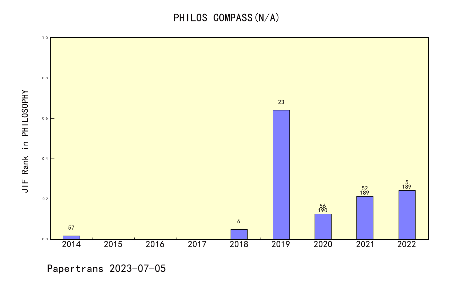 AHCI期刊Philosophy Compass历年派博系数(Pindex)
