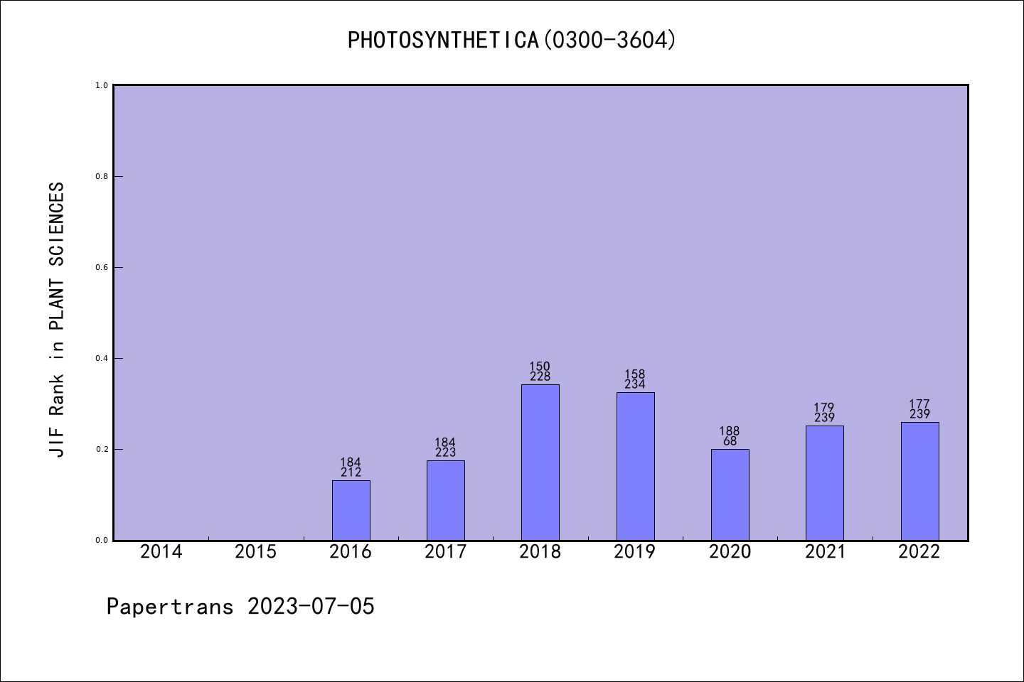 PHOTOSYNTHETICA图表质量排名@SCIE植物科学