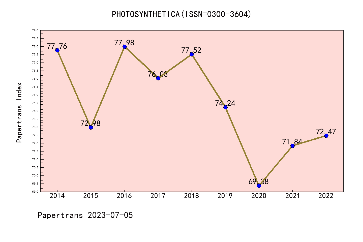 SCIE期刊PHOTOSYNTHETICA历年派博系数(Pindex)