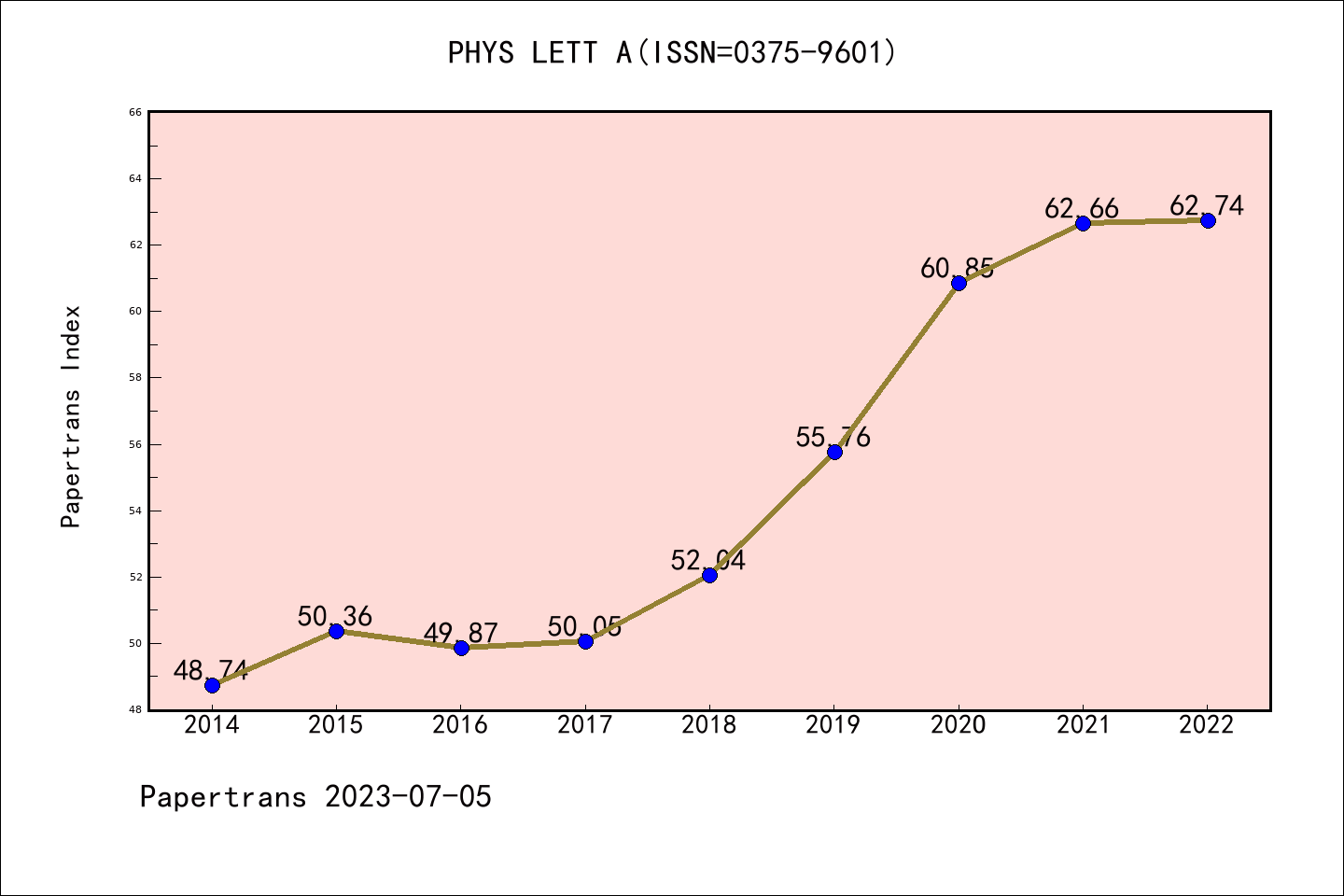 SCIE期刊PHYSICS LETTERS A历年派博系数(Pindex)