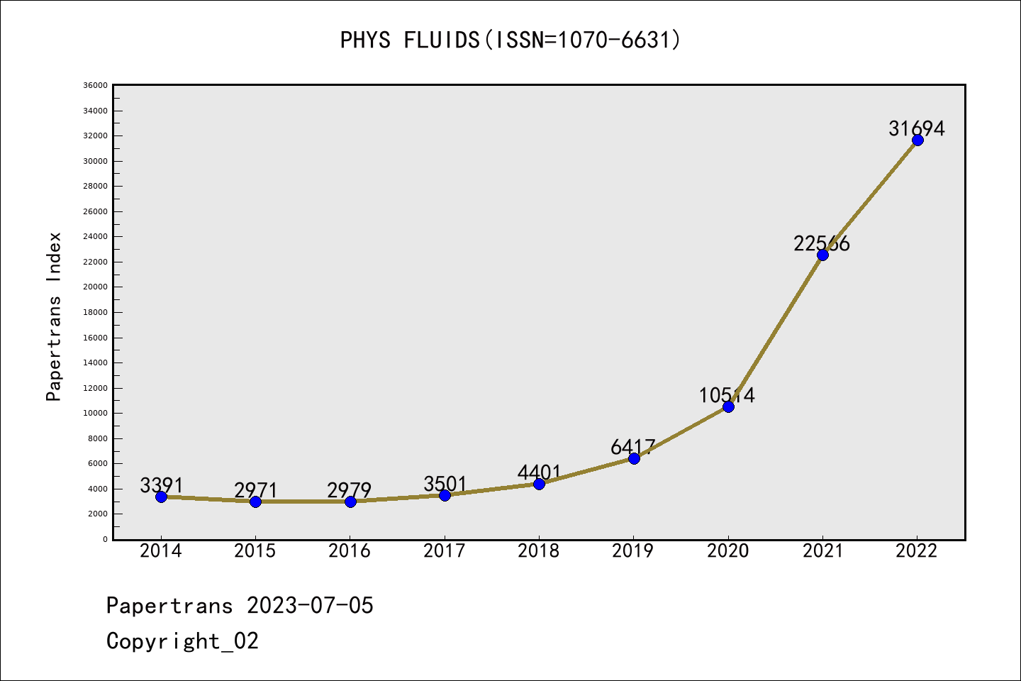 SCIE期刊PHYSICS OF FLUIDS历年派博系数(Pindex)