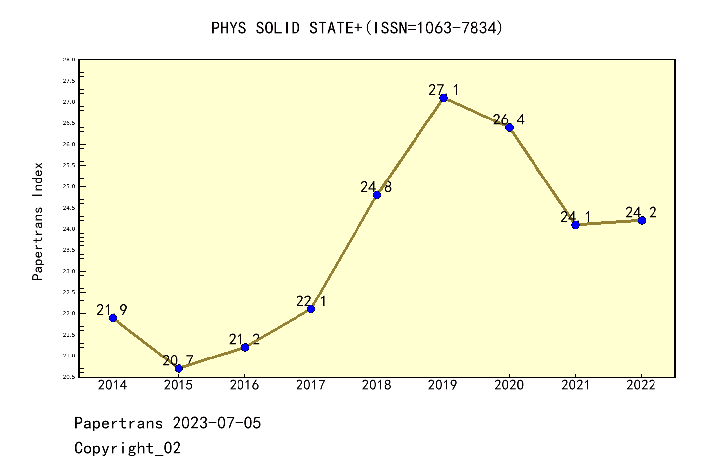 SCIE期刊PHYSICS OF THE SOLID STATE历年派博系数(Pindex)
