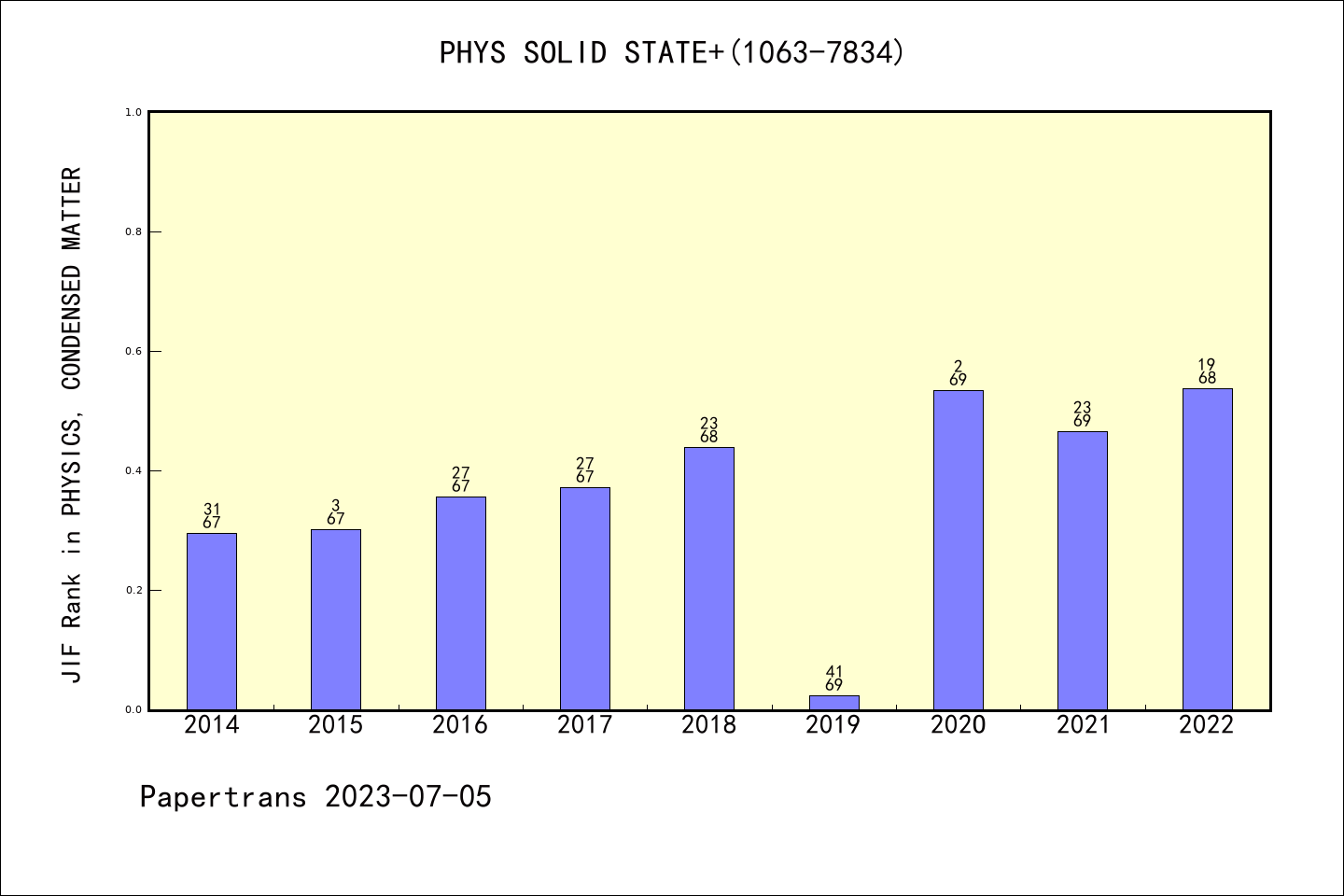 PHYS SOLID STATE+图表质量排名@SCIE凝聚态物理