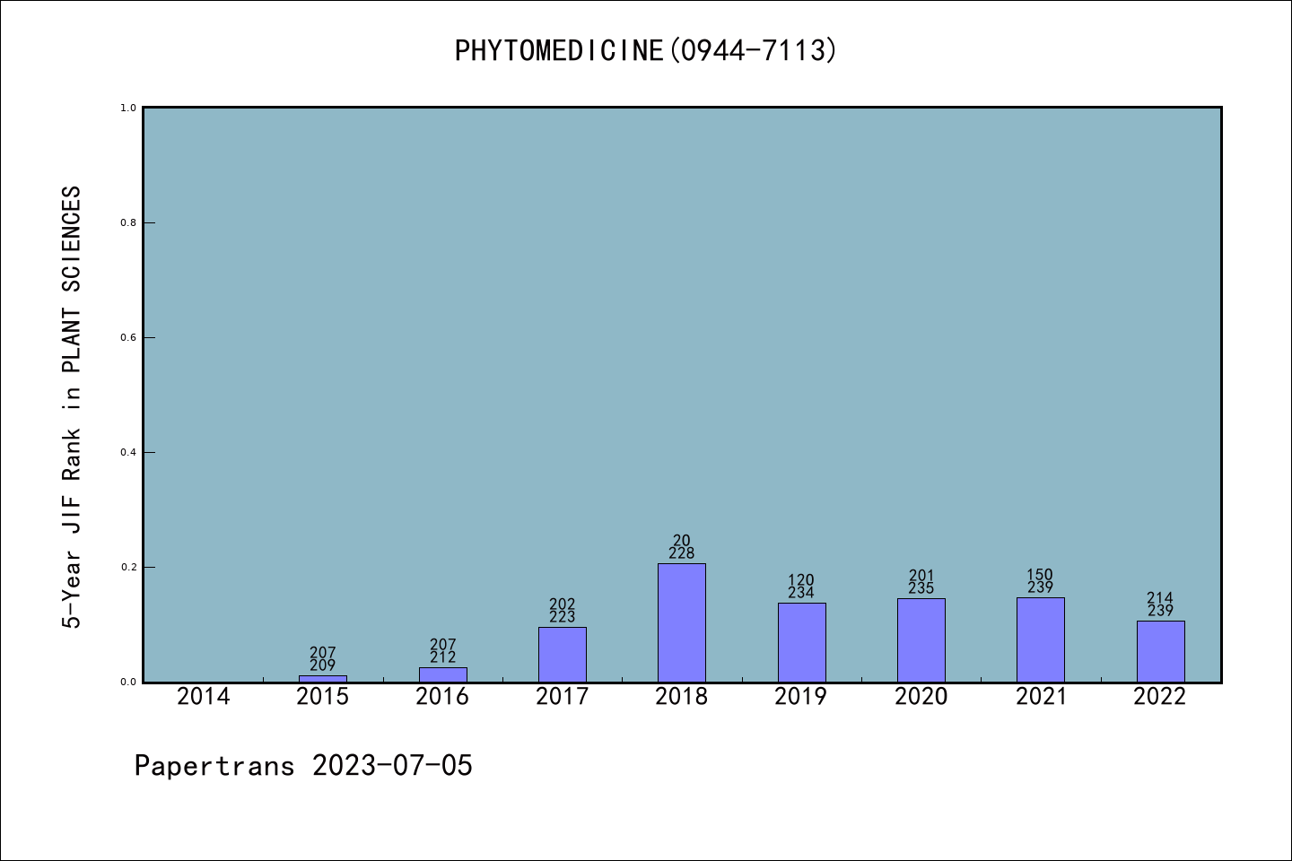 PHYTOMEDICINE派博系数(Pindex)学科排名@SCIE植物科学