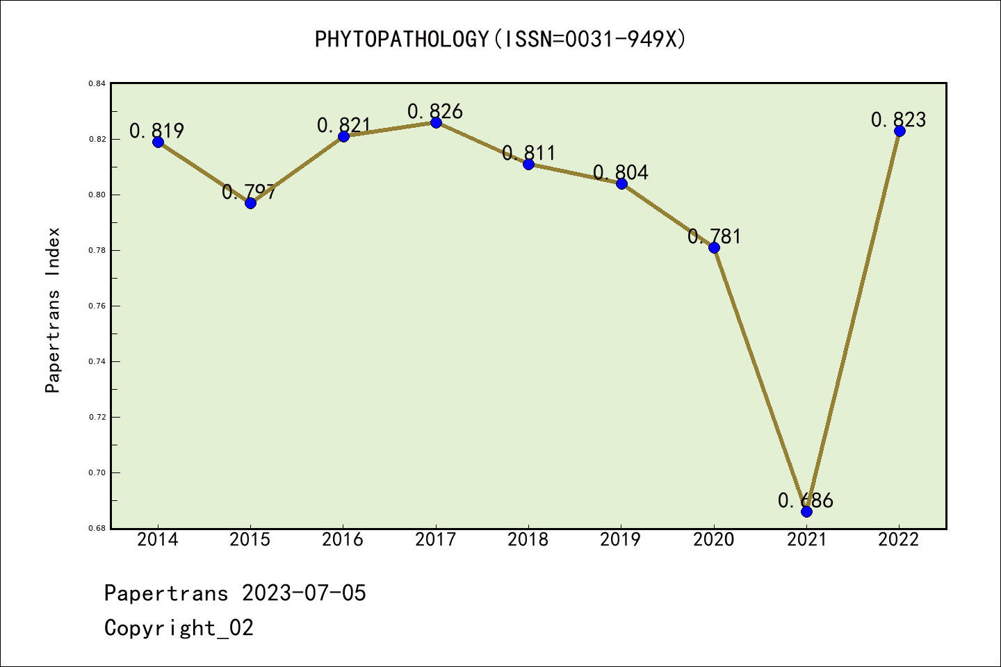 SCIE期刊PHYTOPATHOLOGY历年派博系数(Pindex)