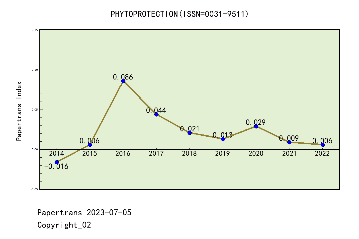 SCIE期刊PHYTOPROTECTION历年派博系数(Pindex)