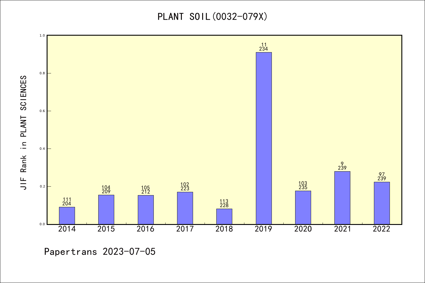 SCIE期刊PLANT AND SOIL历年派博系数(Pindex)