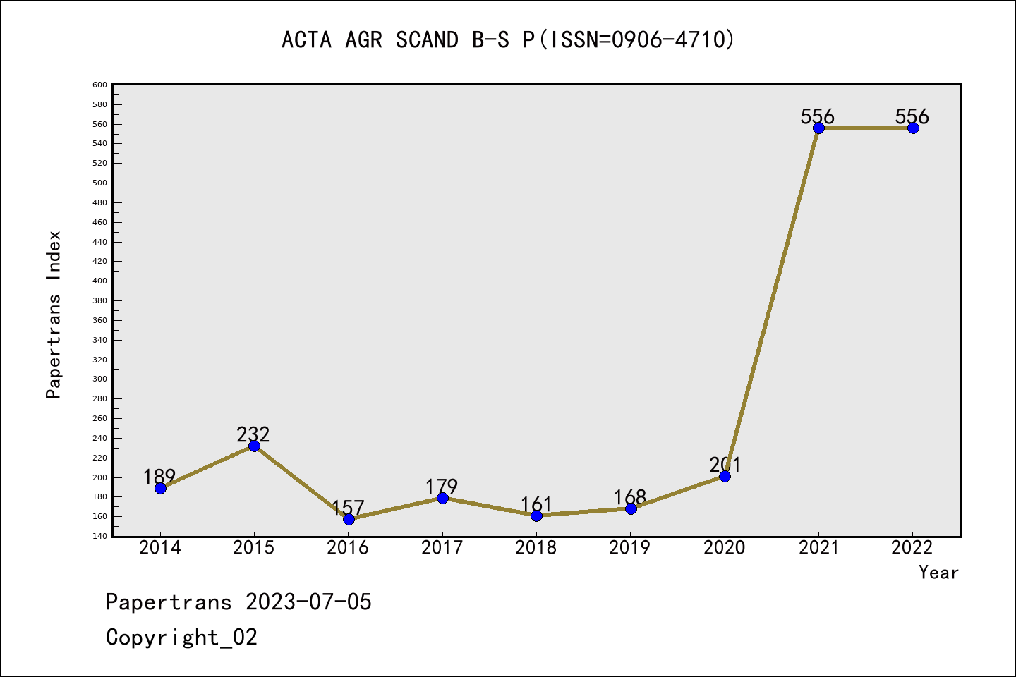 SCIE期刊ACTA AGRICULTURAE SCANDINAVICA SECTION B-SOIL AND PLANT SCIENCE历年派博系数(Pindex)