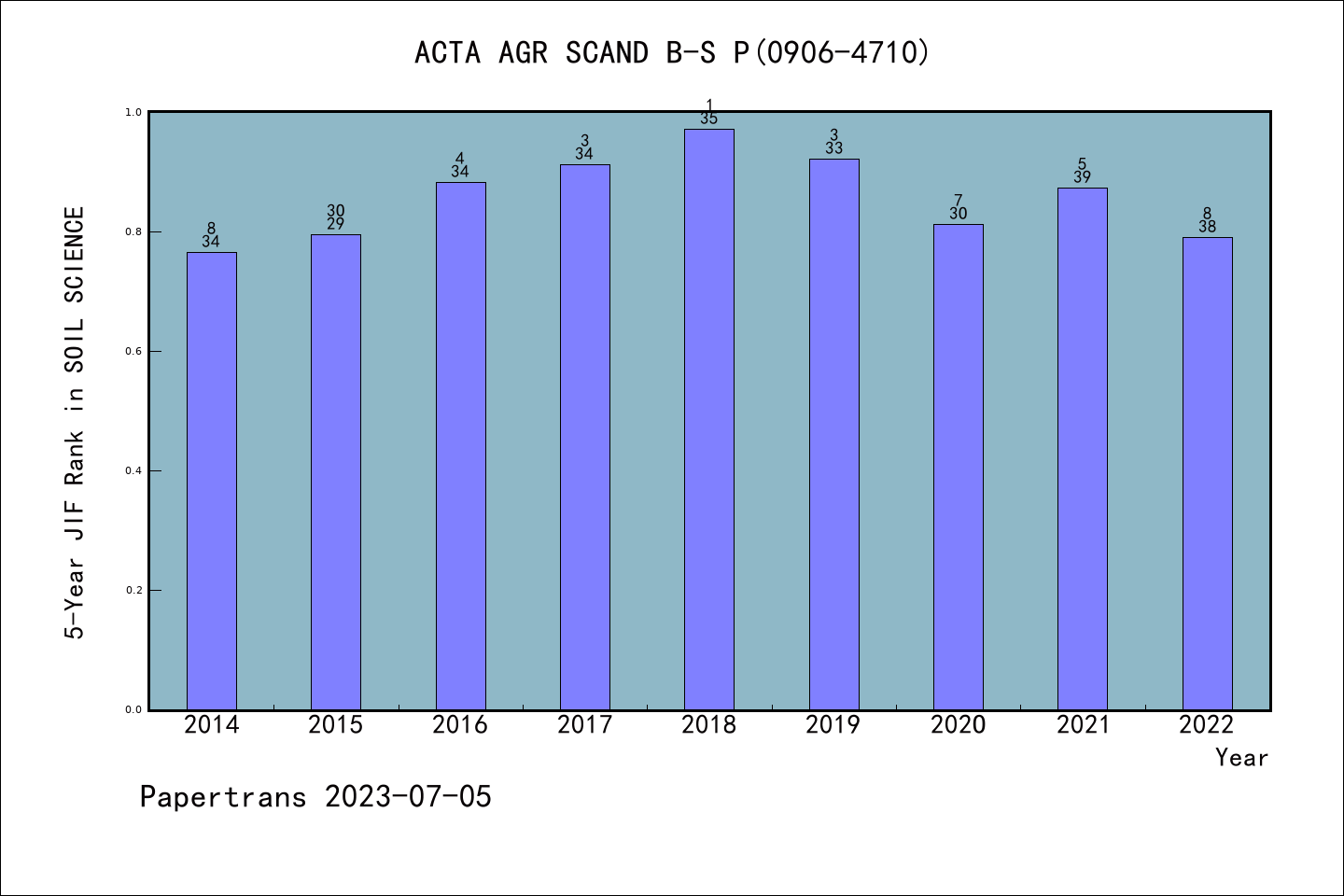 ACTA AGR SCAND B-S P图表质量排名@SCIE土壤科学