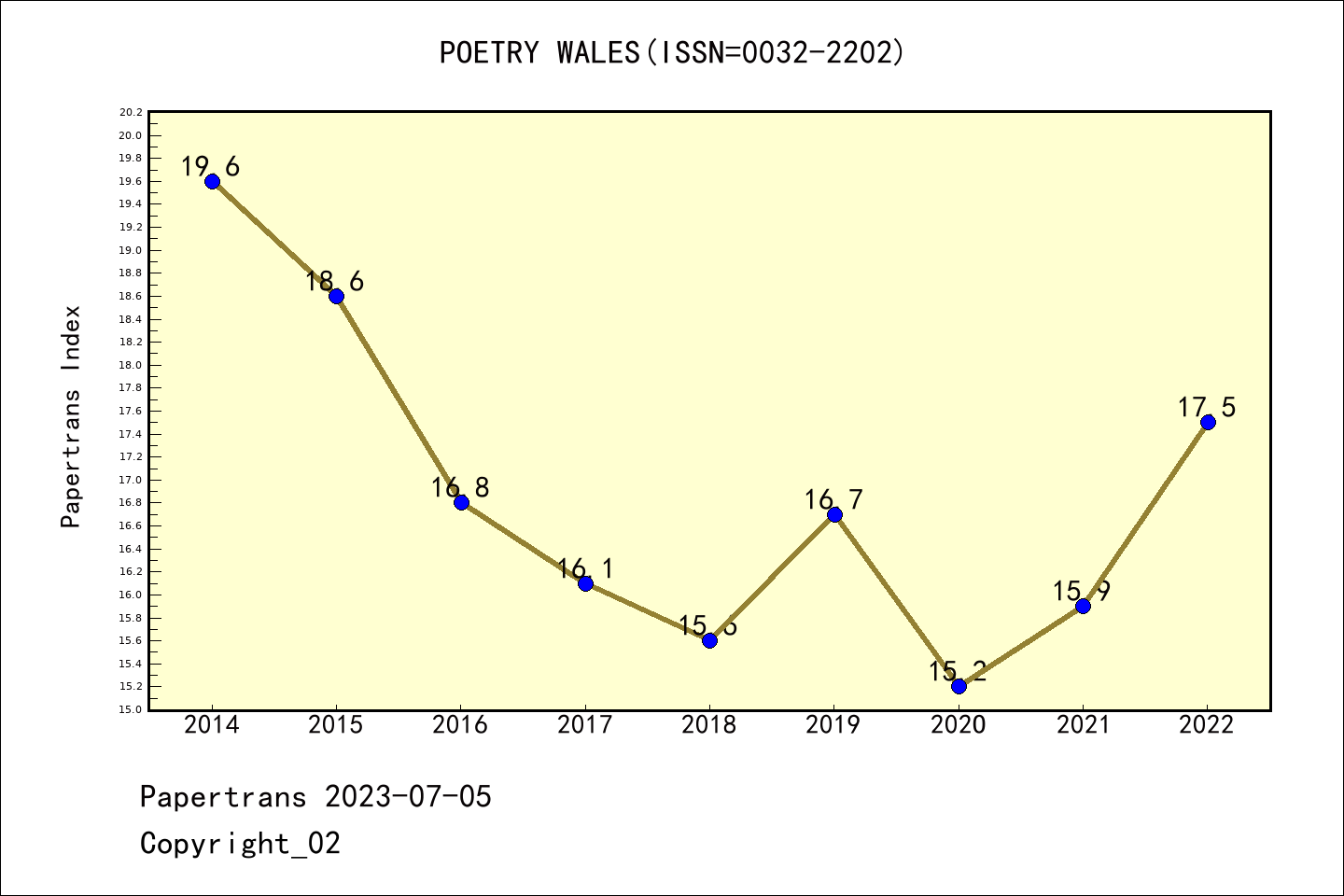 派博 系数 | AHCI期刊POETRY WALES历年派博系数(Pindex)