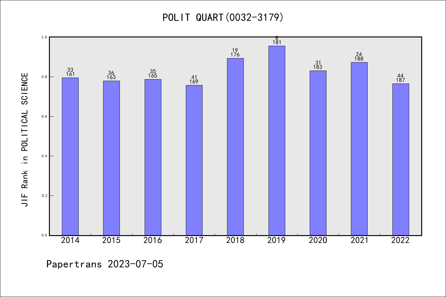 POLITICAL QUARTERLY派博系数(Pindex)学科排名@SSCI政治学