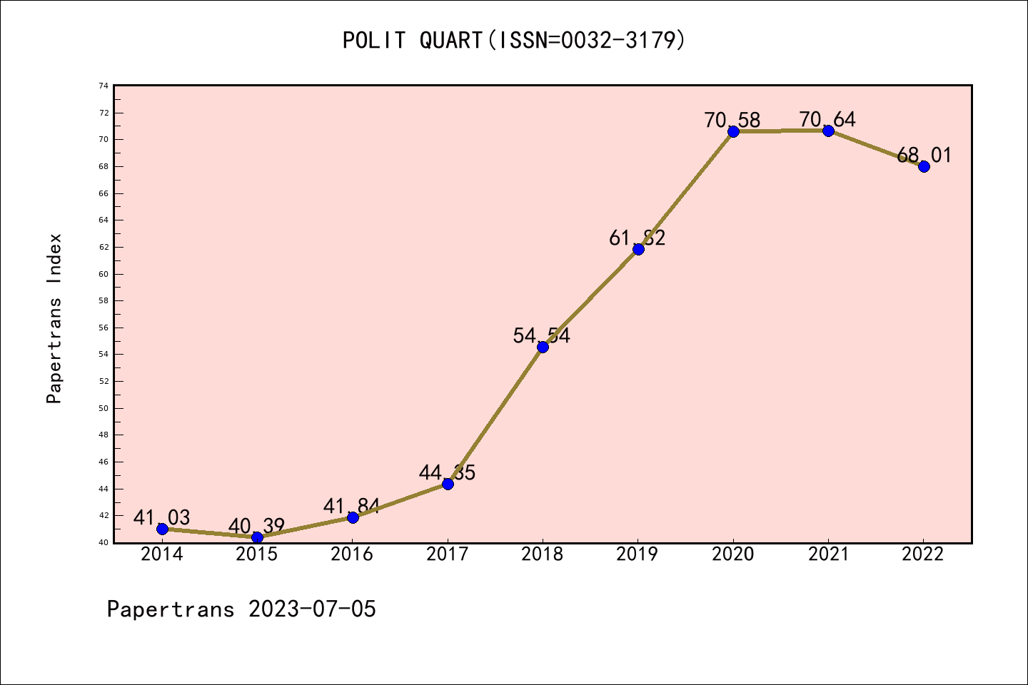 SSCI期刊POLITICAL QUARTERLY历年派博系数(Pindex)