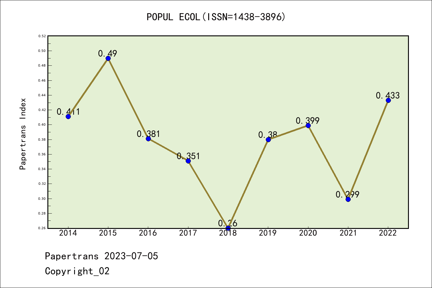 SCIE期刊POPULATION ECOLOGY历年派博系数(Pindex)