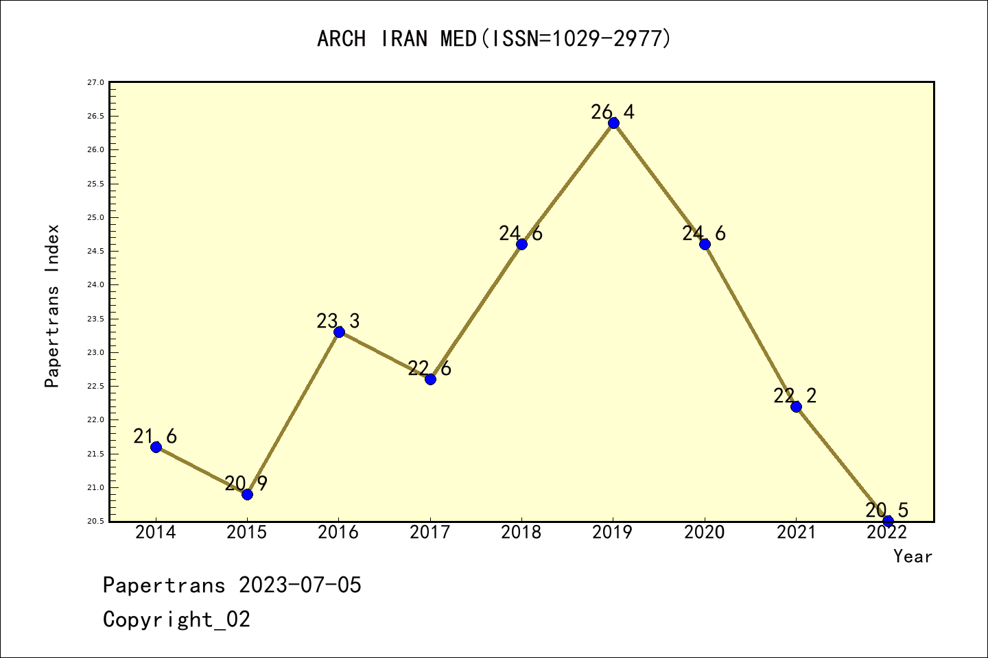 SCIE期刊Archives of Iranian Medicine历年派博系数(Pindex)