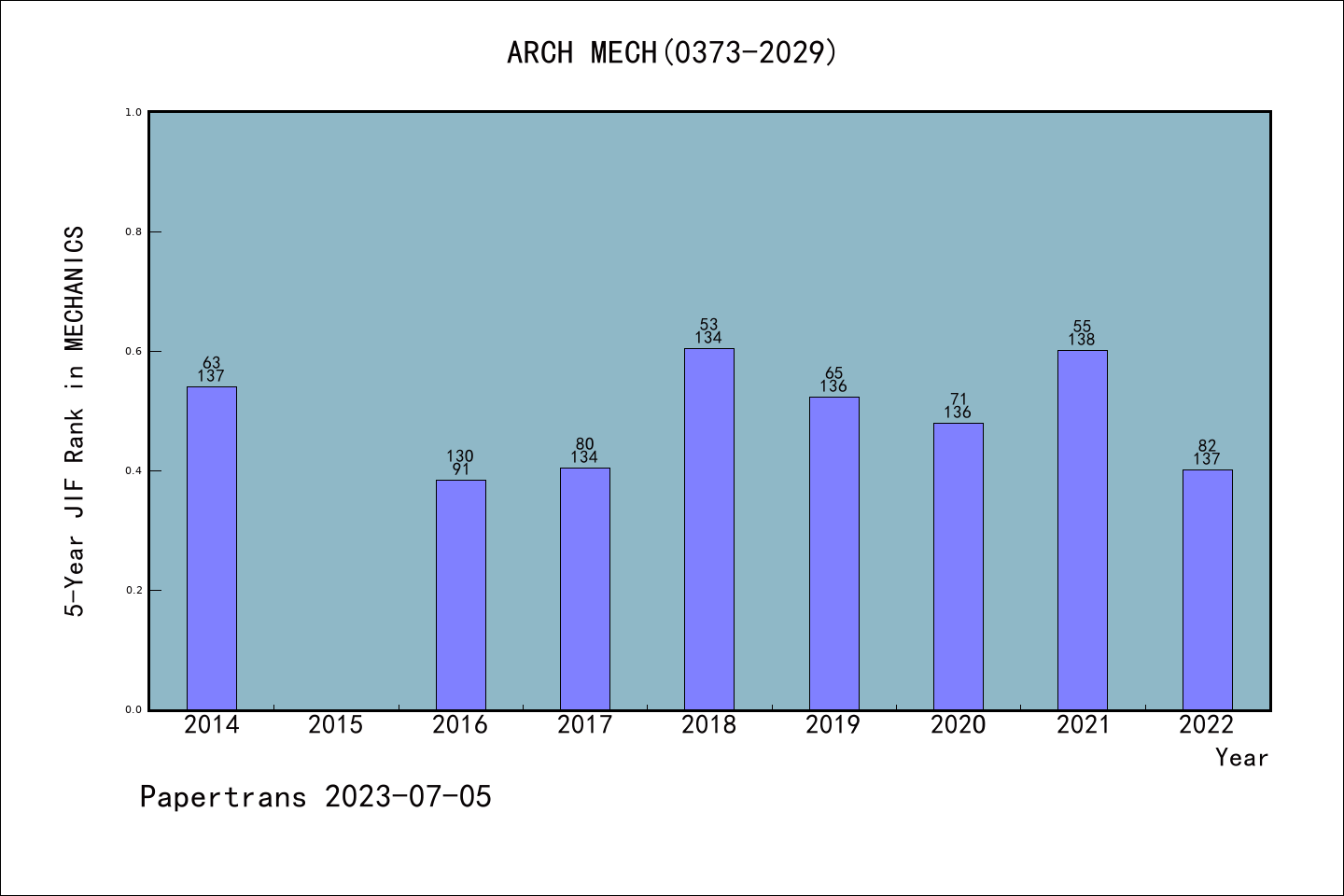 ARCHIVES OF MECHANICS拒稿率学科排名@SCIE力学