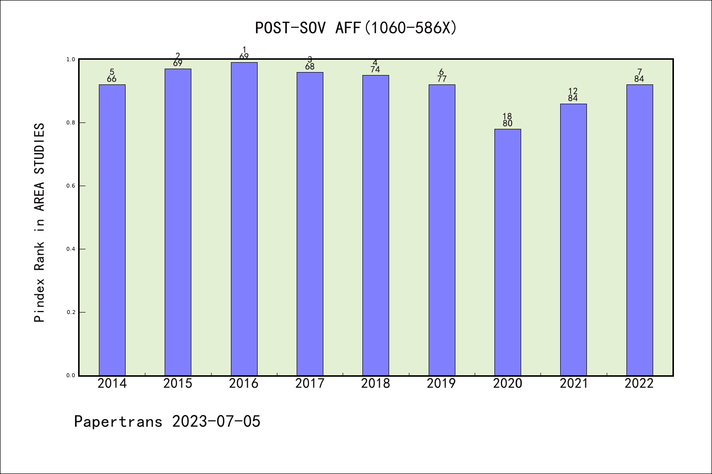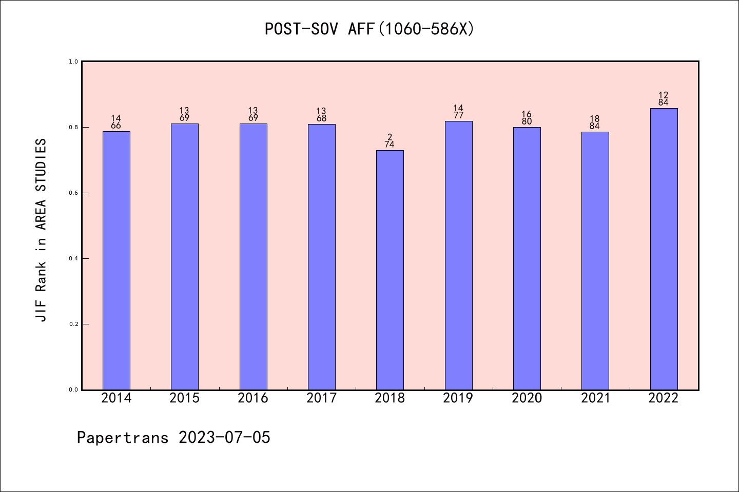 POST-SOVIET AFFAIRS派博系数(Pindex)学科排名@SSCI区域研究