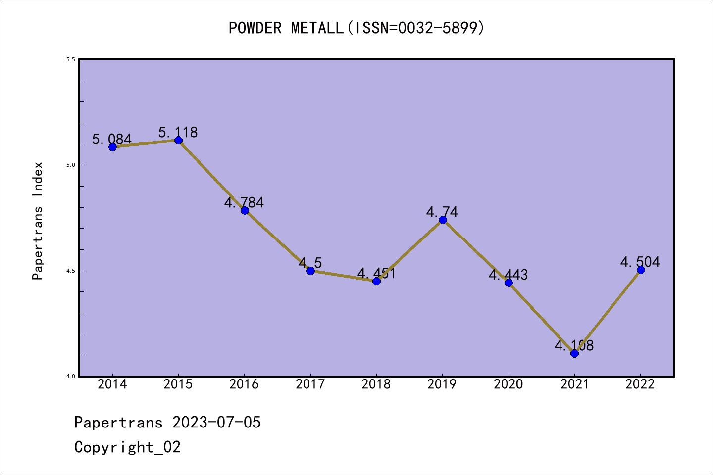 SCIE期刊POWDER METALLURGY历年派博系数(Pindex)