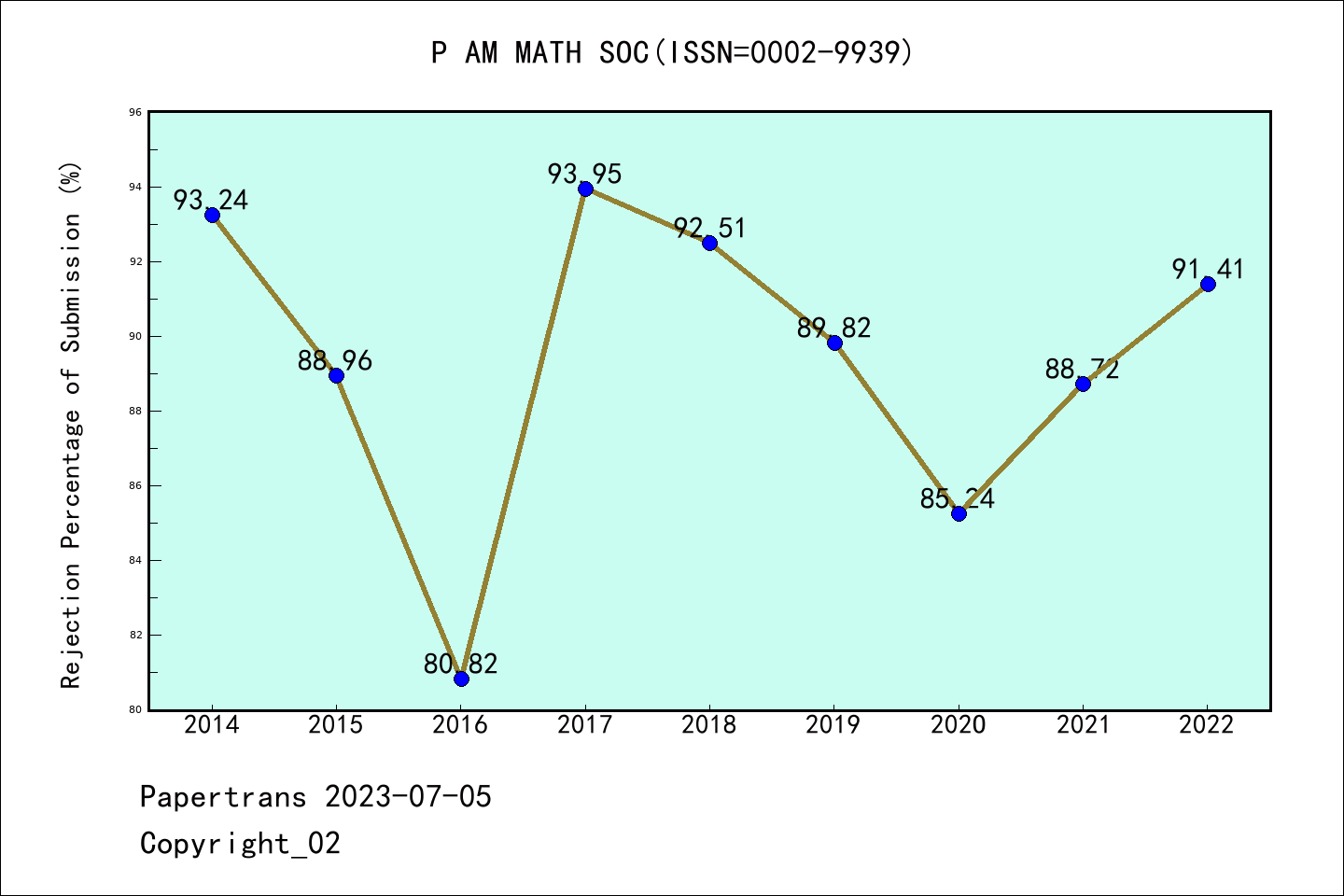 SCIE期刊PROCEEDINGS OF THE AMERICAN MATHEMATICAL SOCIETY历年拒稿占比
