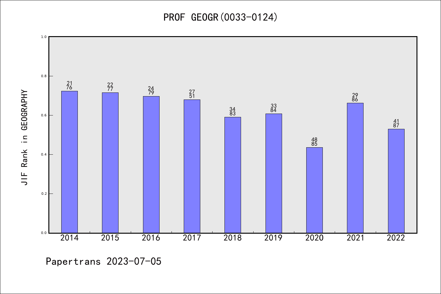 PROFESSIONAL GEOGRAPHER派博系数(Pindex)学科排名@SSCI地理学