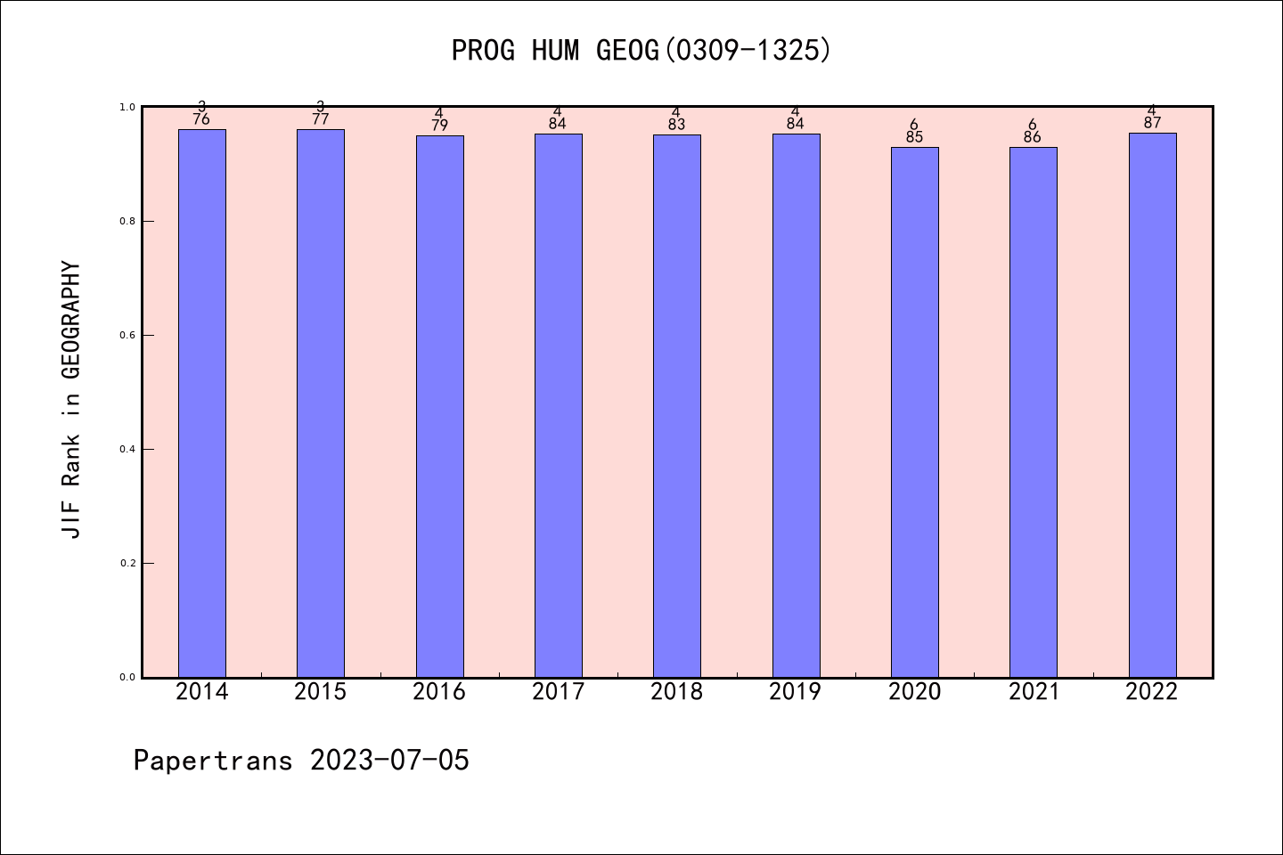 PROG HUM GEOG图表质量排名@SSCI地理学