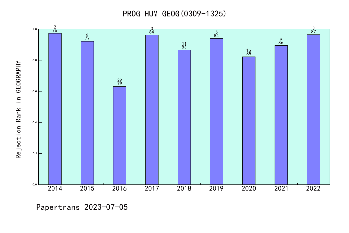 PROGRESS IN HUMAN GEOGRAPHY拒稿率学科排名@SSCI地理学
