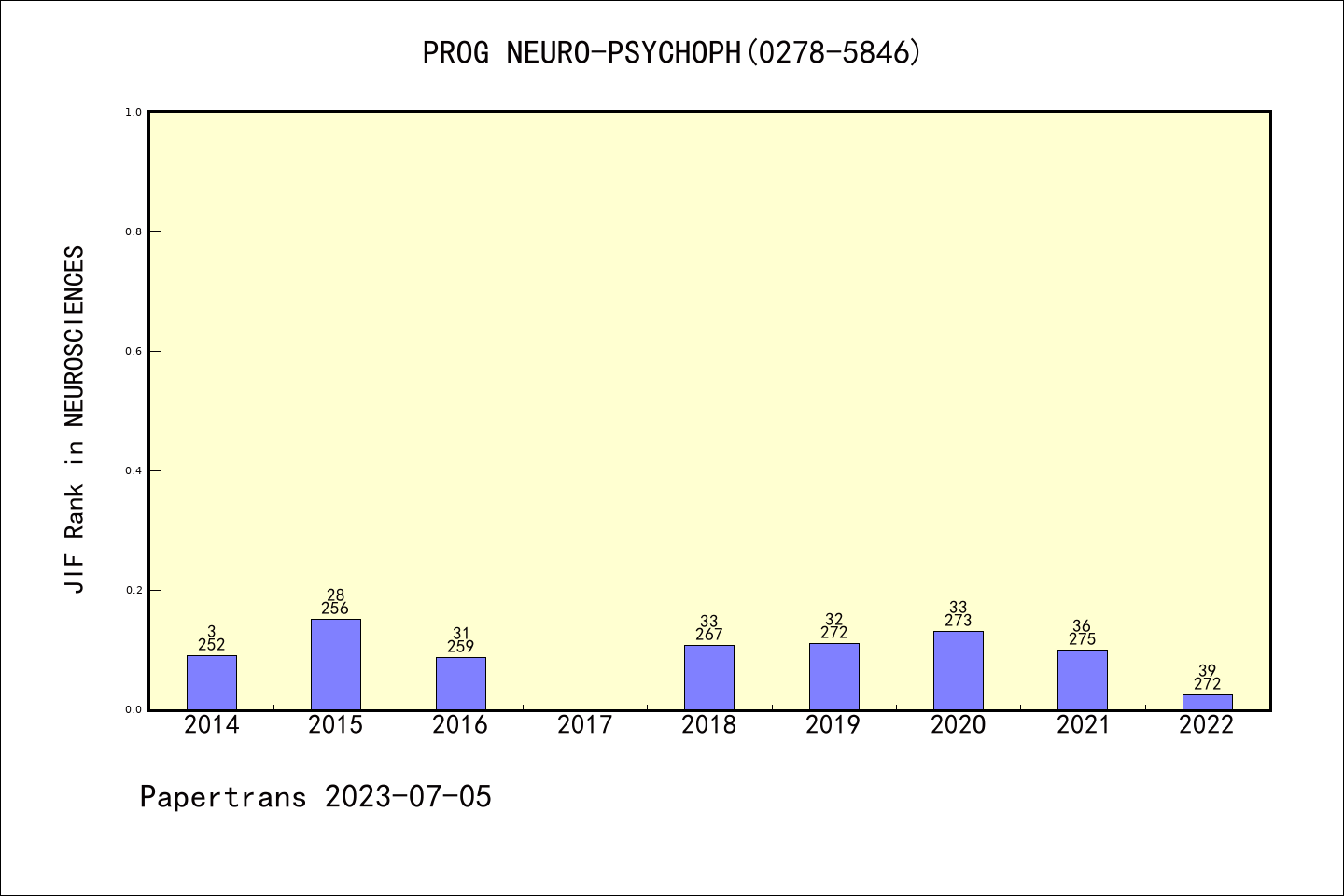 PROGRESS IN NEURO-PSYCHOPHARMACOLOGY & BIOLOGICAL PSYCHIATRY拒稿率学科排名@SCIE神经科学