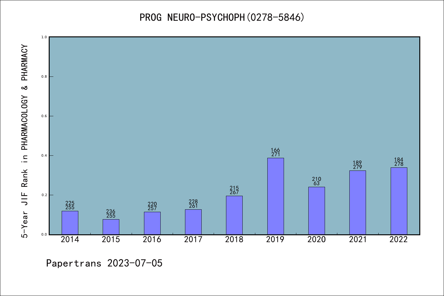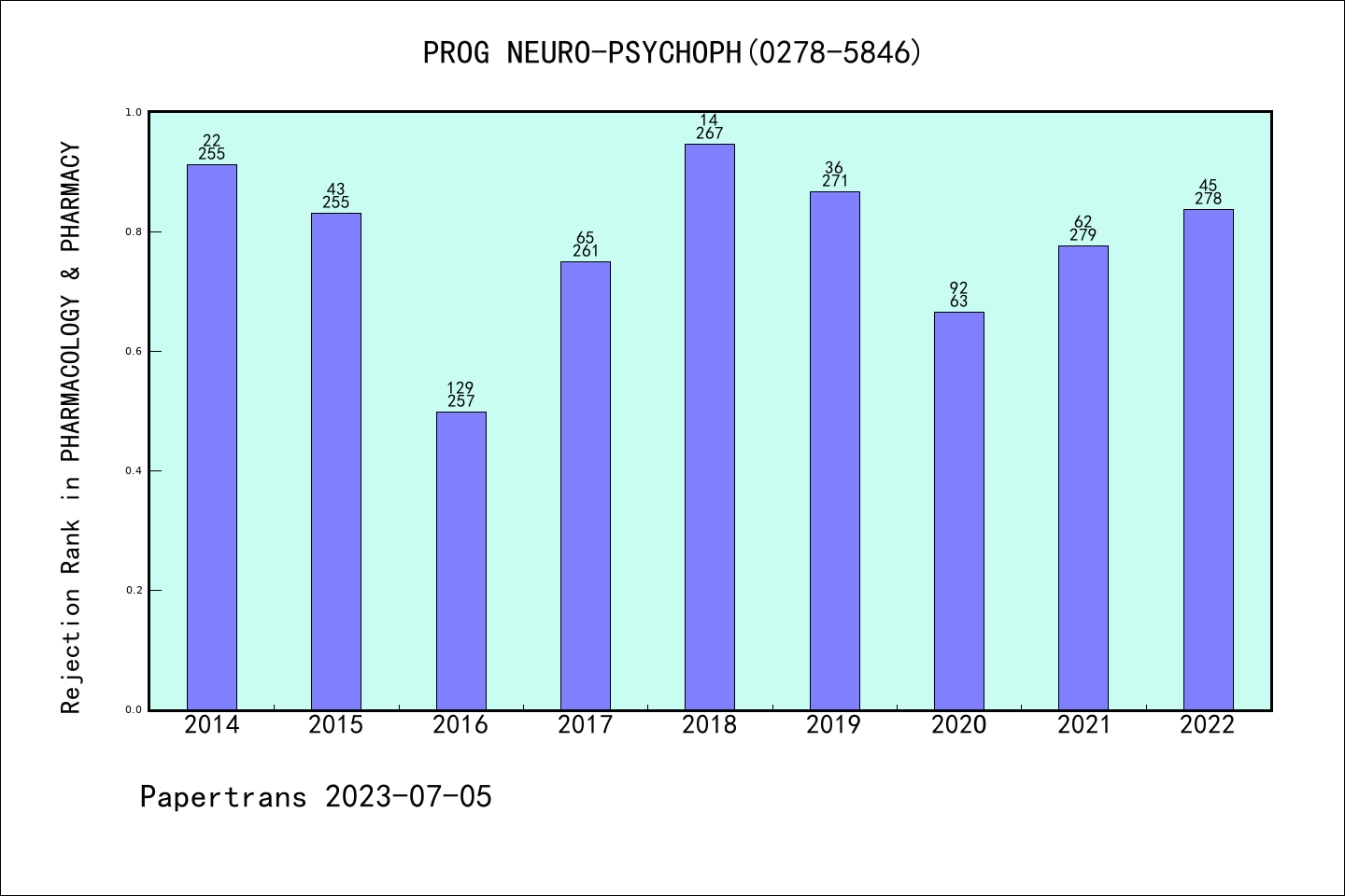 PROGRESS IN NEURO-PSYCHOPHARMACOLOGY & BIOLOGICAL PSYCHIATRY拒稿率学科排名@SCIE药理学与药学