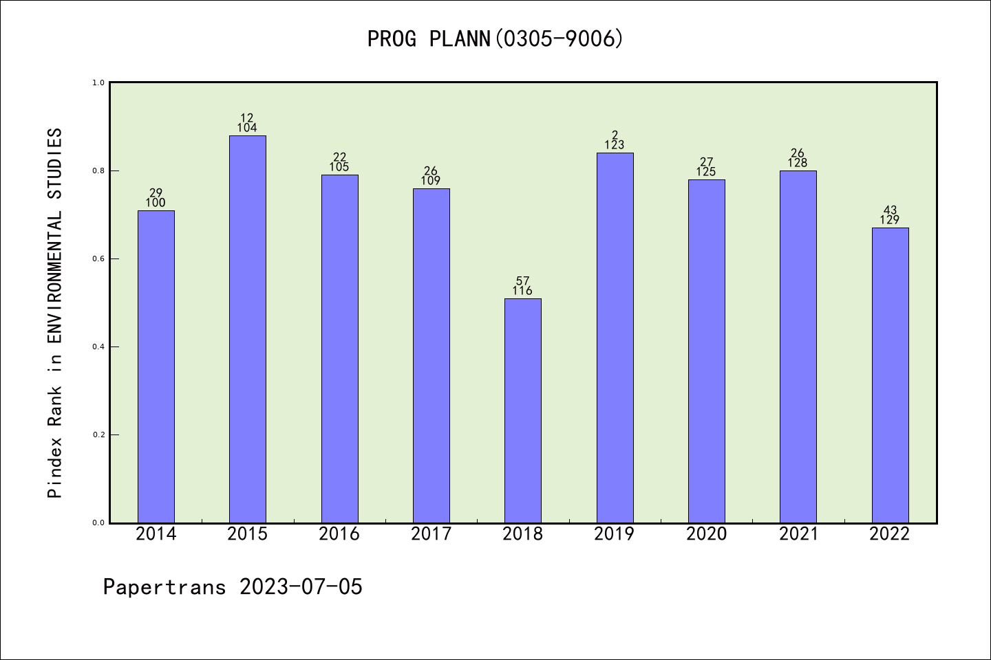 PROGRESS IN PLANNING派博系数(Pindex)学科排名@SSCI环境研究