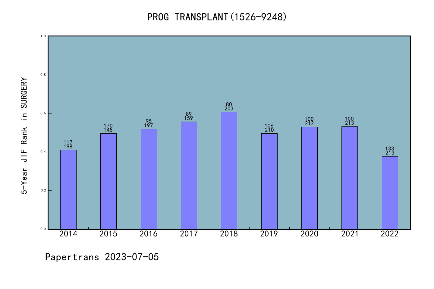 PROG TRANSPLANT图表质量排名@SCIE外科手术