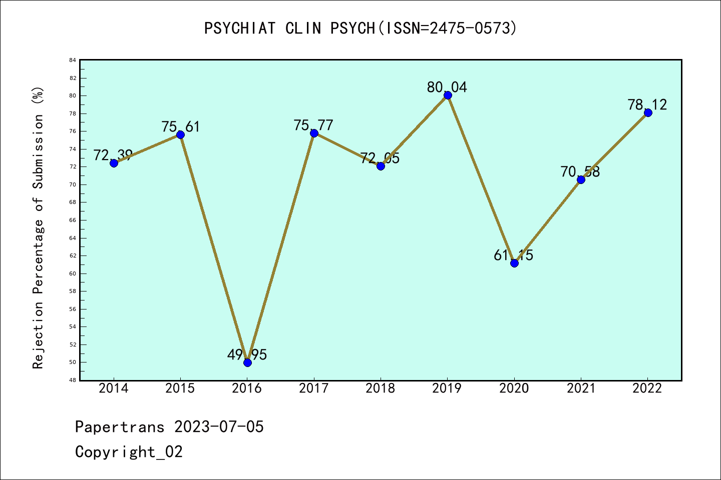 SCIE期刊Psychiatry and Clinical Psychopharmacology历年拒稿占比