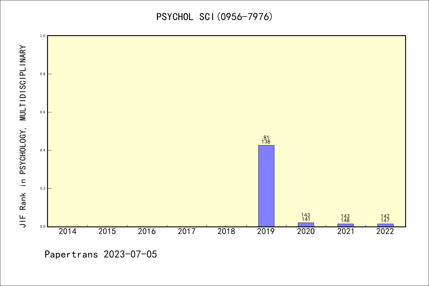 SSCI期刊PSYCHOLOGICAL SCIENCE历年派博系数(Pindex)