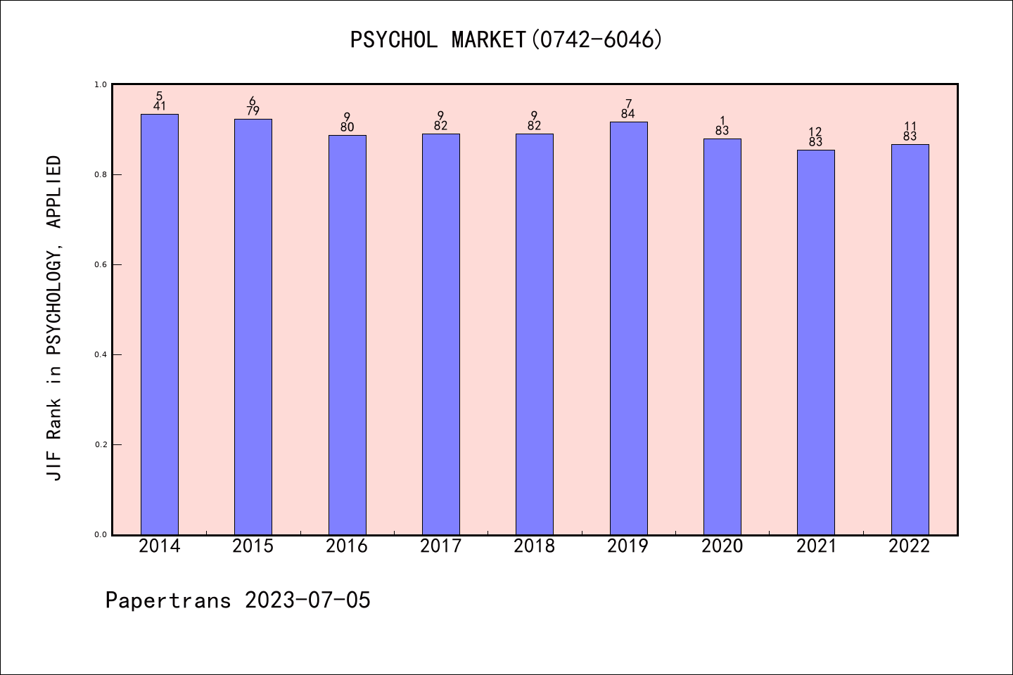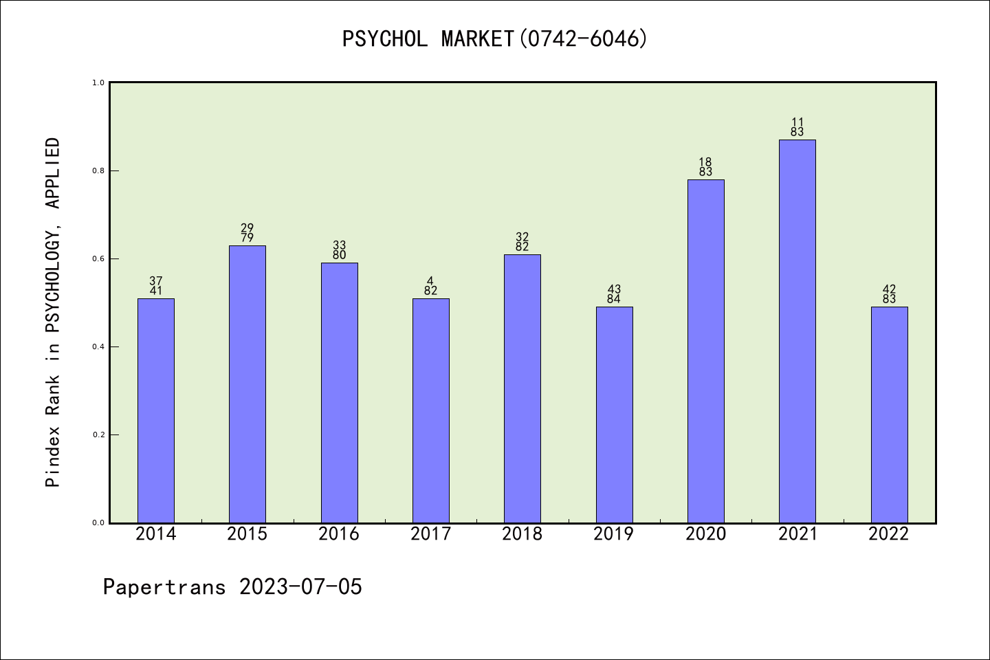 PSYCHOLOGY & MARKETING派博系数(Pindex)学科排名@SSCI应用心理学