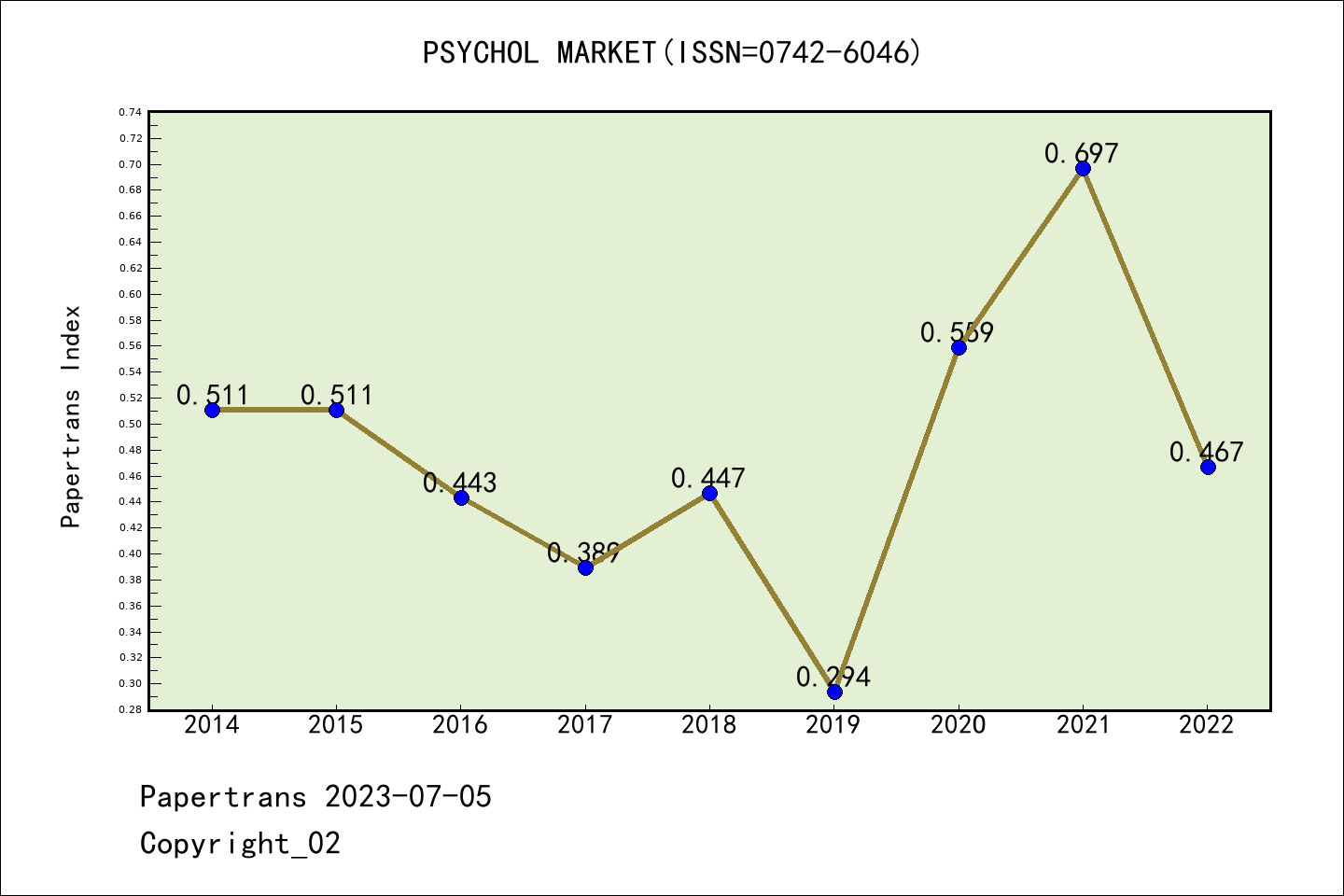 SSCI期刊PSYCHOLOGY & MARKETING历年派博系数(Pindex)
