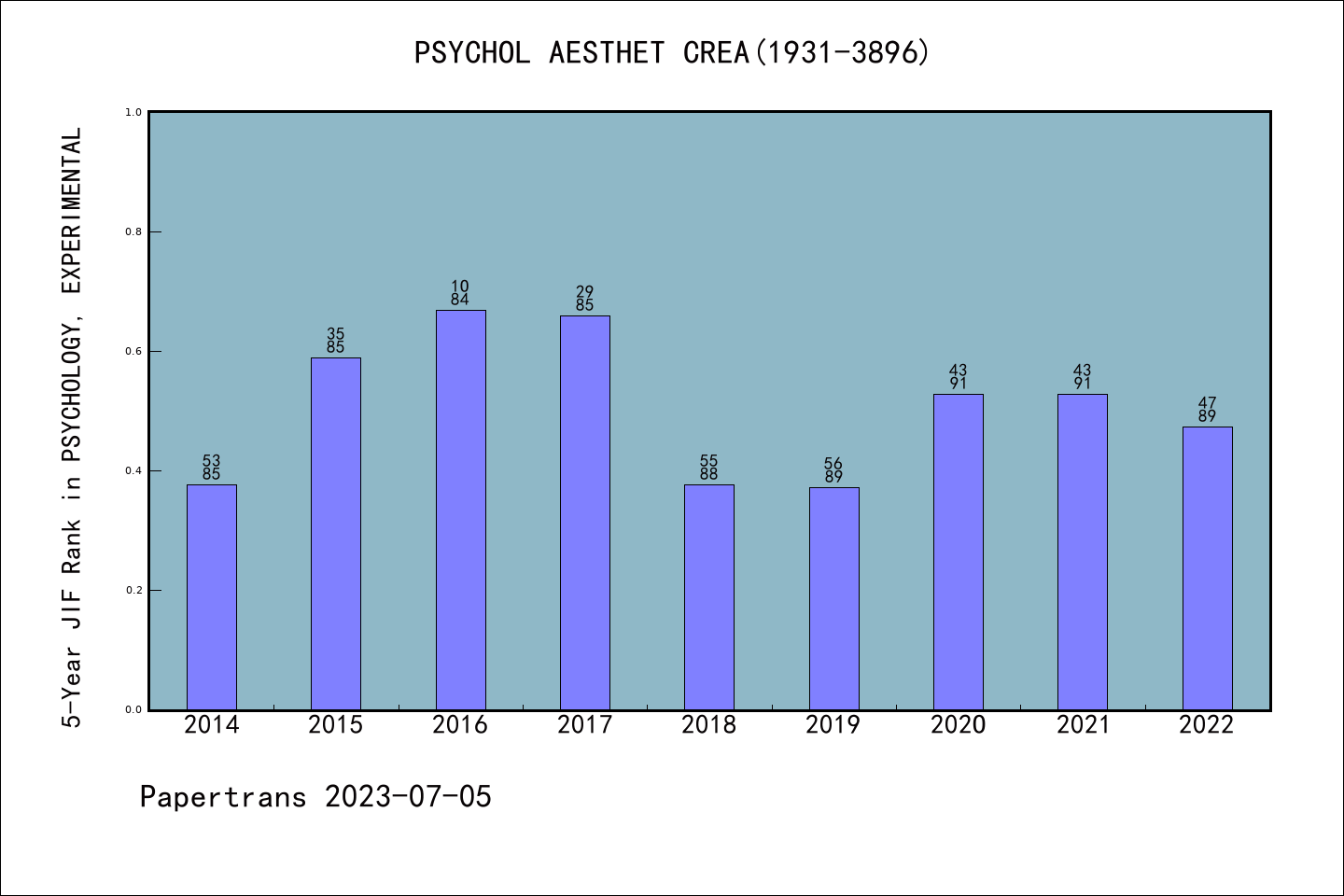 Psychology of Aesthetics Creativity and the Arts拒稿率学科排名@SSCI实验心理学