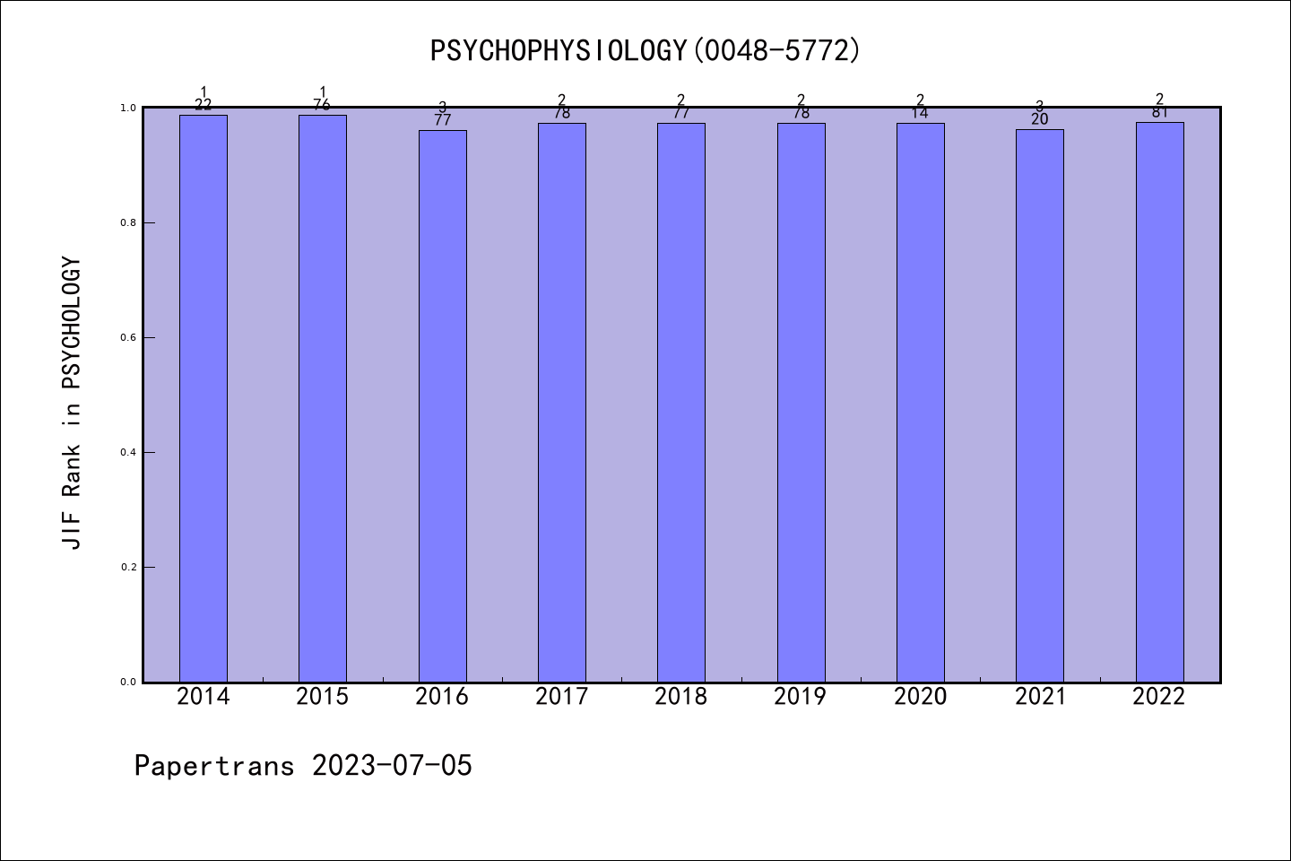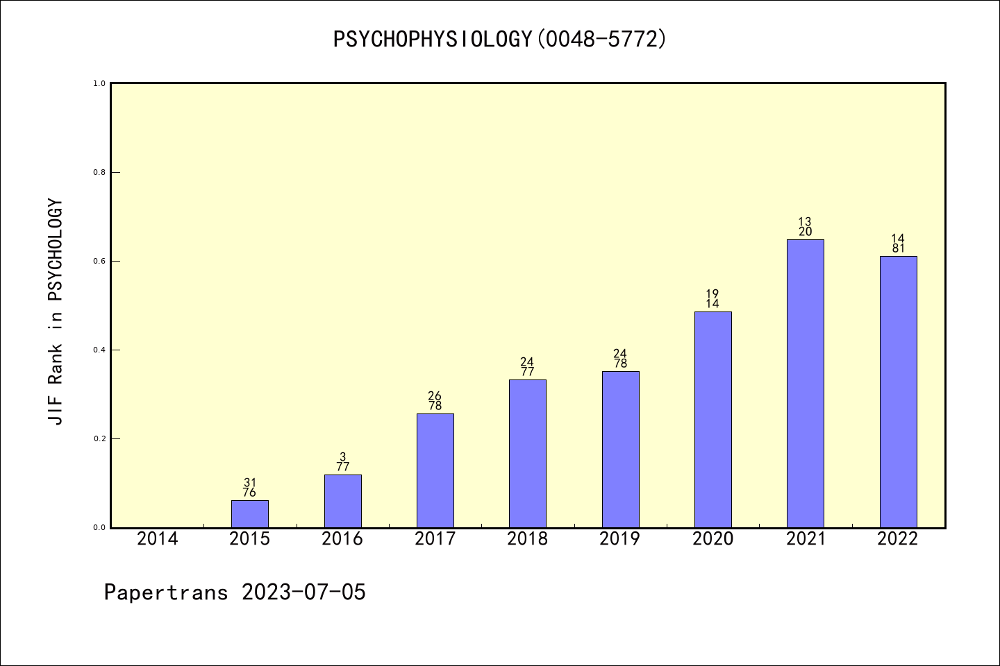 PSYCHOPHYSIOLOGY派博系数(Pindex)学科排名@SCIE心理学