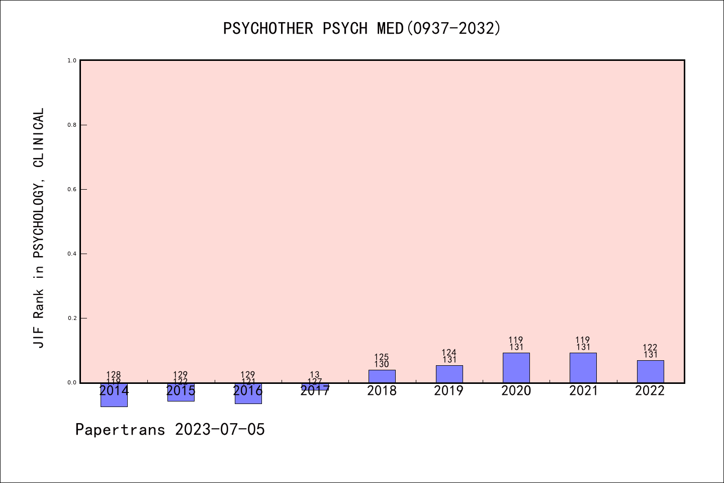 PSYCHOTHERAPIE PSYCHOSOMATIK MEDIZINISCHE PSYCHOLOGIE派博系数(Pindex)学科排名@SSCI临床心理学