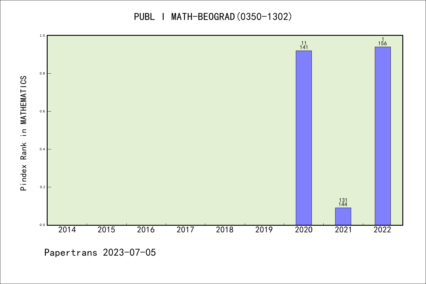 ESCI期刊Publications de l Institut Mathematique-Beograd历年派博系数(Pindex)