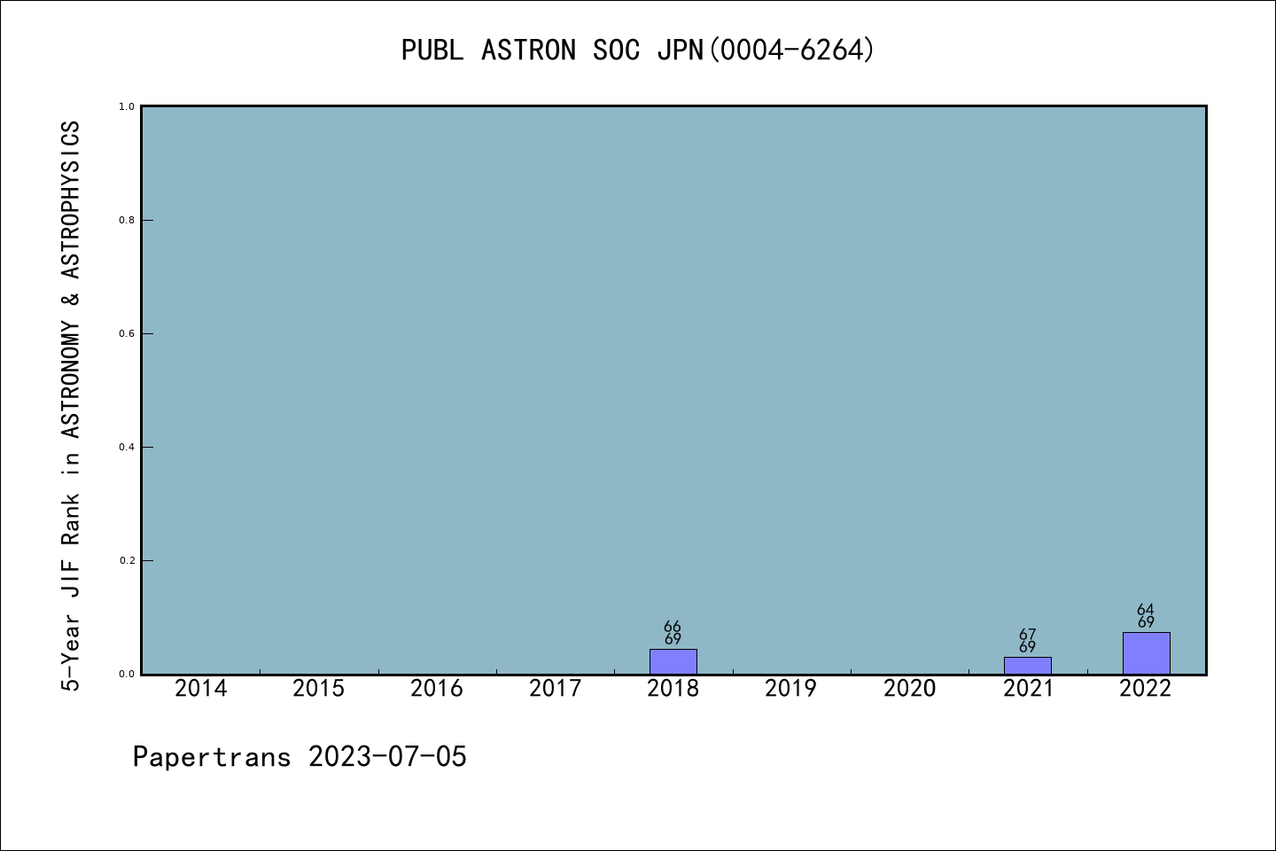 PUBLICATIONS OF THE ASTRONOMICAL SOCIETY OF JAPAN拒稿率学科排名@SCIE天文学与天体物理学