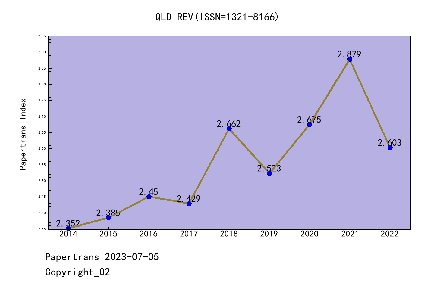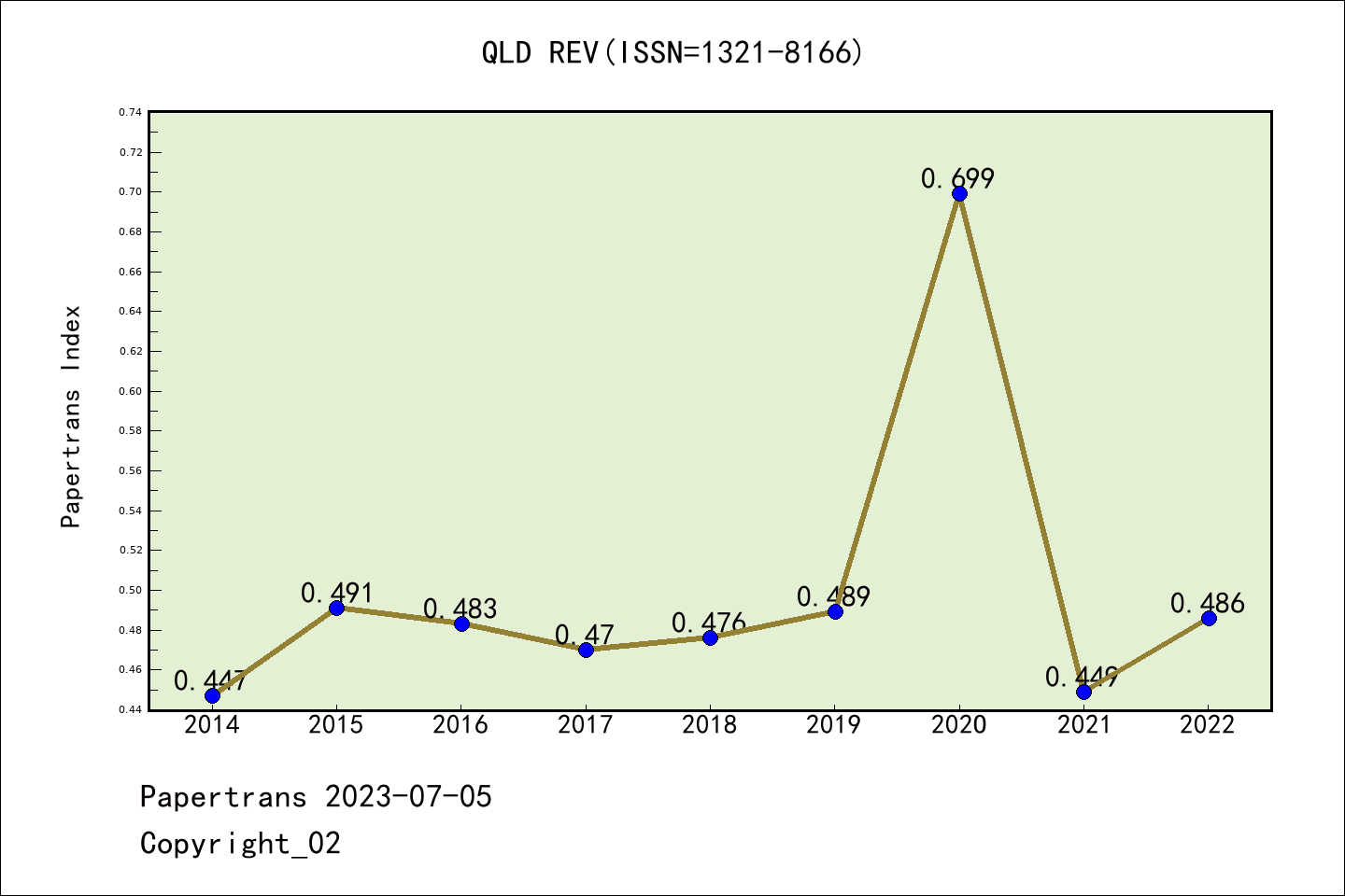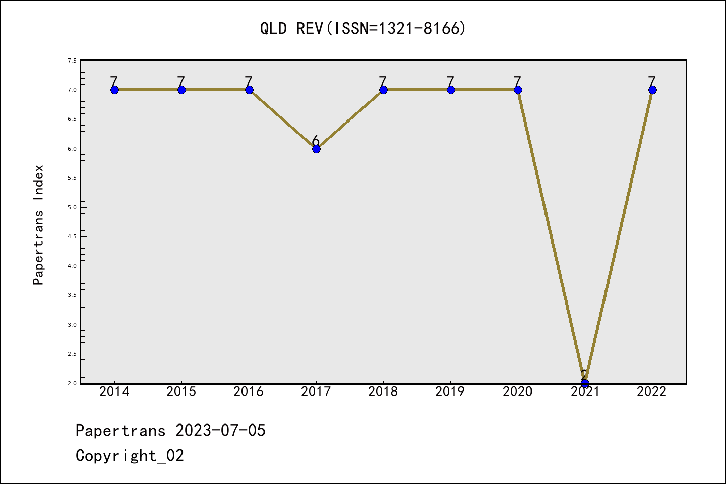 ESCI期刊Queensland Review历年派博系数(Pindex)