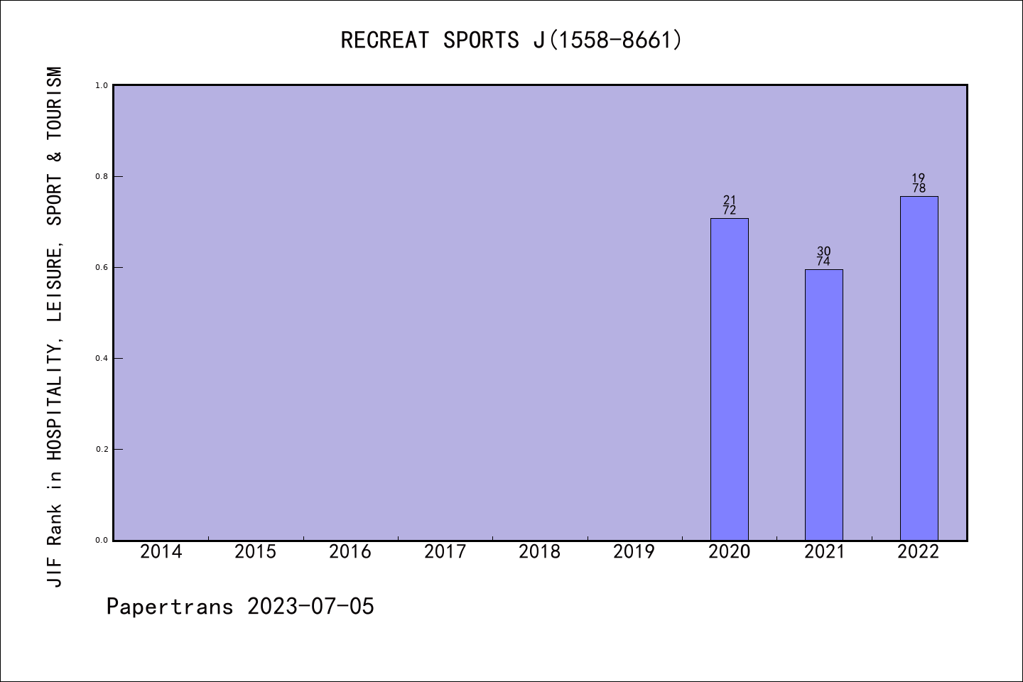 Recreational Sports Journal拒稿率学科排名@ESCI酒店休闲体育和旅游
